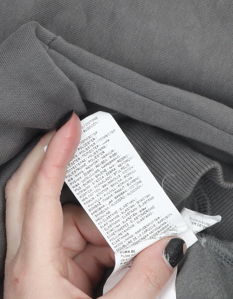 Stay warm and stylish with this classic grey Puma pullover hoodie, a wardrobe essential for men who appreciate comfort and sporty design. Made from a soft and durable blend of cotton and polyester, the fleece fabric provides a cosy and breathable feel, making it ideal for cooler days or casual layering throughout autumn, winter and spring. Featuring the iconic Puma logo emblazoned across the chest, this hoodie delivers effortless style for everyday wear, gym sessions or relaxed weekends. The hoodie has a regular fit, designed to give comfort without feeling too loose or restrictive, while the adjustable drawstring hood provides versatility for changing weather conditions. A practical kangaroo pocket adds further functionality, perfect for keeping hands warm or carrying small essentials. With its ribbed cuffs and hem, the hoodie maintains its shape and offers extra comfort whether you're lounging indoors or staying active outdoors. This versatile piece works equally well for casual outings, training sessions or post-gym relaxation. The understated grey colourway pairs easily with jeans, joggers, or shorts for a modern athletic look. In very good pre-owned condition with some minor marks on the front and sleeve, this hoodie still has plenty of life left and remains a staple example of Puma’s commitment to quality and sporting style. Machine washable for easy care. A perfect choice for men seeking a dependable hoodie that blends practicality, comfort and bold branding in one stylish package.