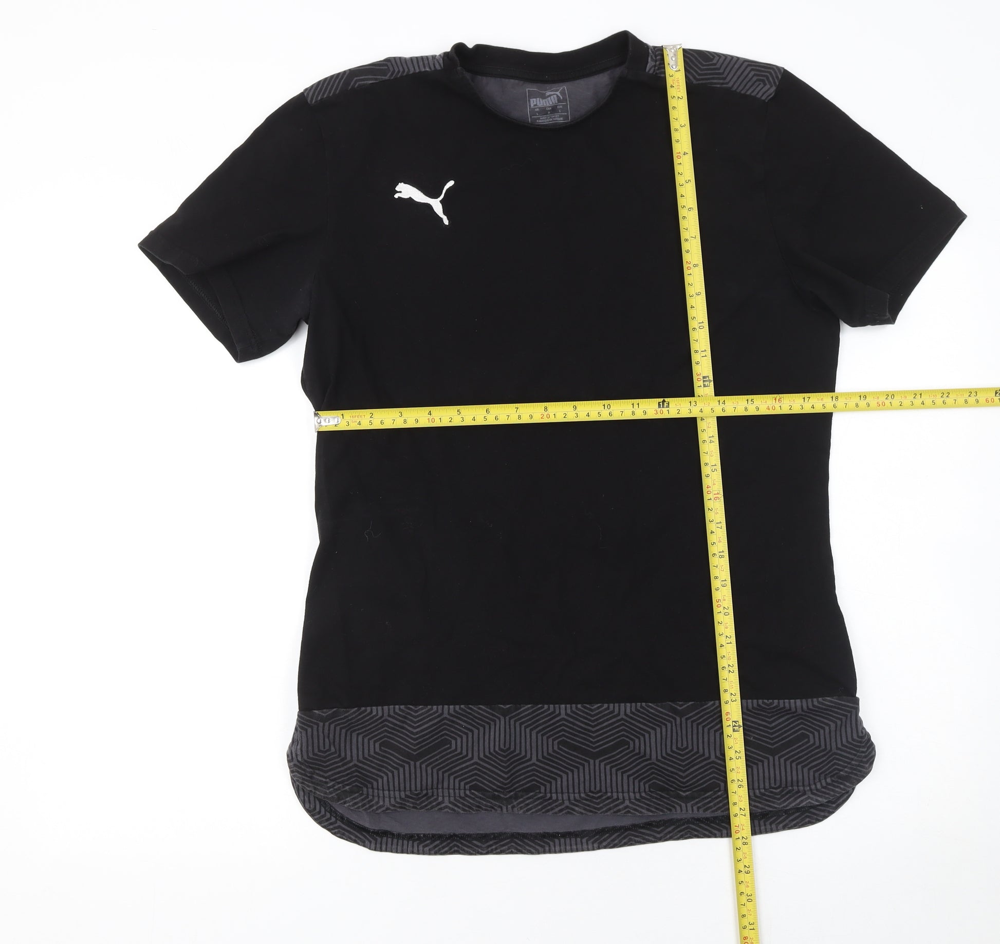 Puma Men’s Black Geometric Panel Crew Neck T-Shirt Size L