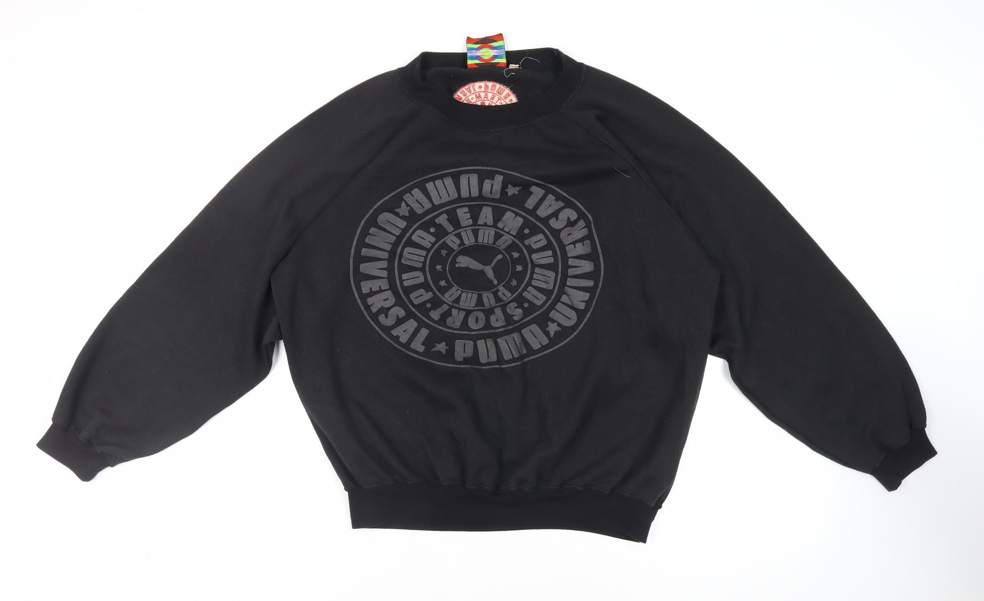 Mens Black Polyester Pullover Sweatshirt Size L - Vintage Logo