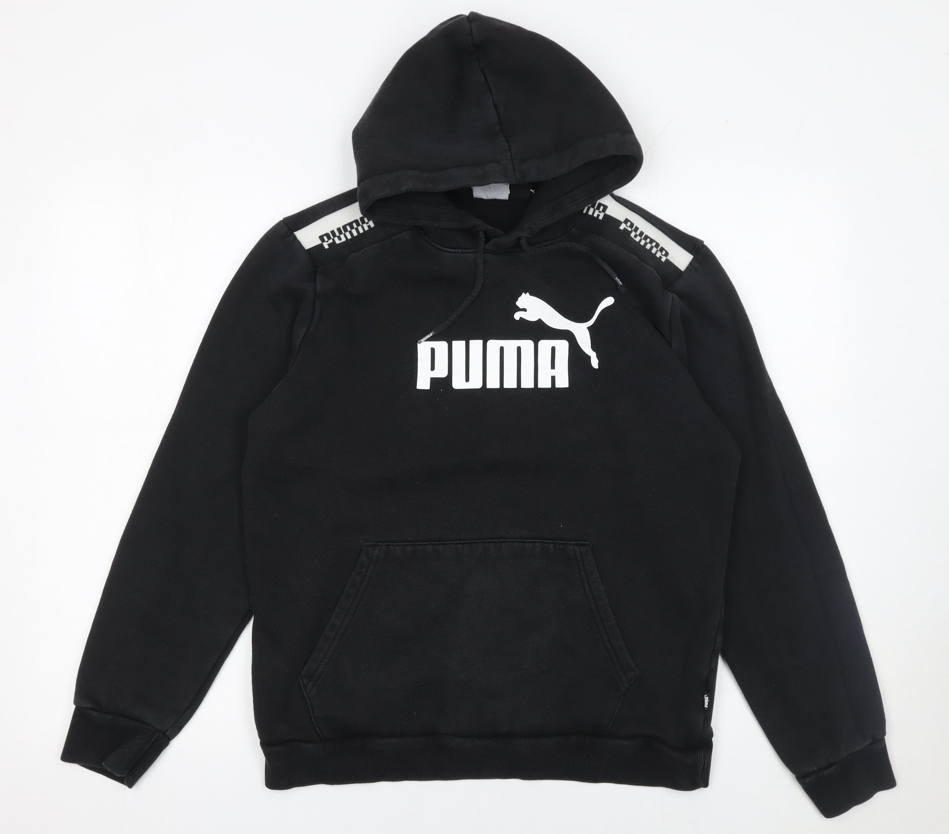 Puma Men's Black Pullover Hoodie Medium Cotton Blend Logo Sweatshirt