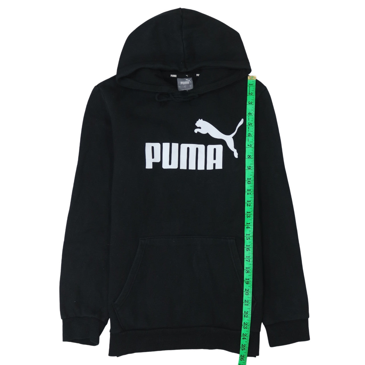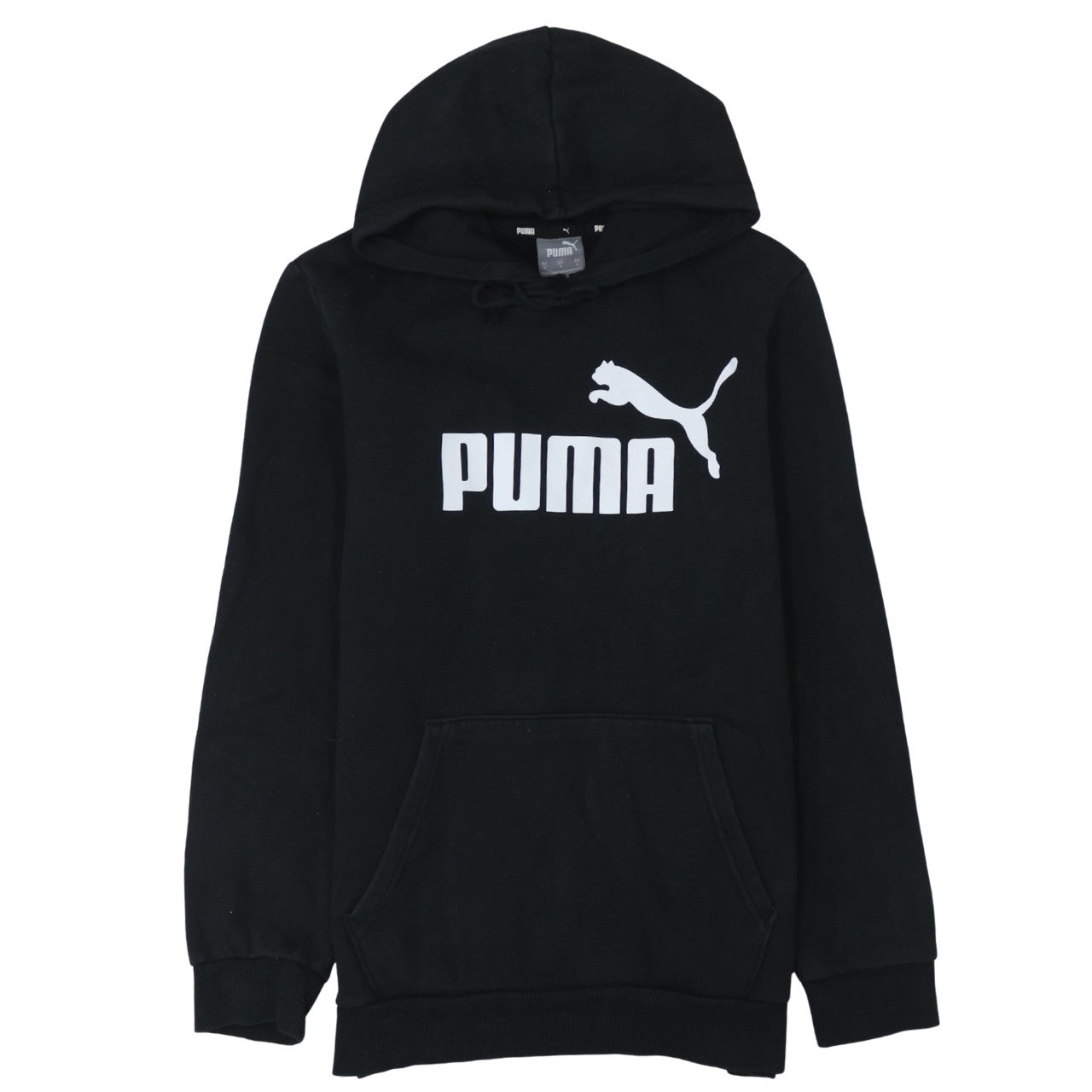 Add a sporty edge to your everyday wardrobe with this classic black pullover hoodie from Puma. Crafted from a soft cotton-polyester fleece blend, it offers both warmth and breathability, making it ideal for layering through the cooler months of autumn, winter, and early spring. The hoodie features the iconic Puma logo boldly printed across the chest for a timeless athletic look. With a practical drawstring hood and a spacious front kangaroo pocket, this piece combines functionality with effortless streetwear appeal. Designed for men but also suitable for unisex wearers, its regular fit ensures comfortable movement, whether you're heading to the gym, lounging at home, or running errands around town. The long sleeves with ribbed cuffs and hem add structure and help retain warmth, while the lightweight fleece fabric keeps it easy to layer under a jacket. This pullover hoodie pairs perfectly with joggers, jeans, or shorts for a relaxed, everyday outfit. Machine washable for easy care, it’s a convenient and versatile addition to any casual wardrobe. In excellent pre-owned condition, showing only minimal signs of gentle wear, this hoodie offers quality and style at a fraction of the new retail price. Known for its enduring comfort and sporty heritage, Puma delivers reliable performance in every piece. Ideal for walking, running, and general fitness activities, this hoodie will quickly become a go-to favourite for both active and leisure days. If you’re looking for a clean, modern, logo-branded wardrobe staple that’s as practical as it is stylish, this Puma pullover hoodie is a perfect choice. A great value pick for anyone who appreciates simple, sleek designs with premium comfort.