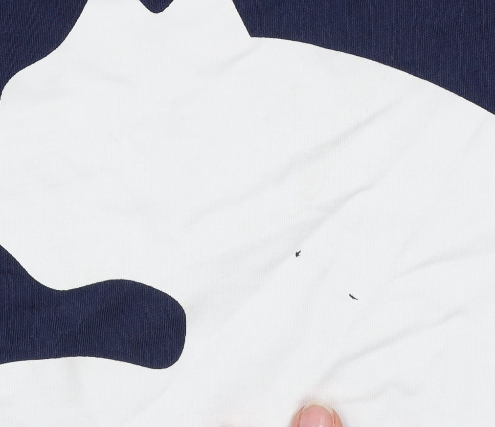 This classic Puma men's blue graphic T-shirt offers an effortlessly sporty look with everyday comfort. Crafted from 100% cotton in a soft and breathable jersey fabric, this shirt is ideal for casual wear, gym sessions, or simply relaxing in style throughout the summer. The front features Puma's iconic leaping cat logo in an eye-catching white, lending the T-shirt an instantly recognisable athletic flair. Designed with a traditional crew neckline and short sleeves, it provides a timeless fit suitable for men who appreciate quality basics with a sporty edge. The regular fit allows ease of movement and comfort, while the lightweight, breathable cotton ensures 24-hour wearability. This shirt pairs seamlessly with jeans, joggers, or shorts, making it a versatile piece for any casual wardrobe. The navy blue colourway adds a sleek touch, while the minimal design brings understated confidence. Made in Bangladesh and machine washable for easy care, this T-shirt remains durable for long-lasting wear. Although lightly pre-worn with minor marks as shown, it is presented in very good condition and ready to wear again with many more outings left to enjoy. Perfect for daily wear, sports clubs, or casual weekends, this Puma graphic tee remains a sought-after essential for anyone who values iconic design with maximum comfort. Whether you’re a Puma fan or seeking a reliable staple top, this piece promises both style and substance at great value. A quality must-have addition for men’s casual summer wardrobes, combining minimalism with brand heritage effortlessly.