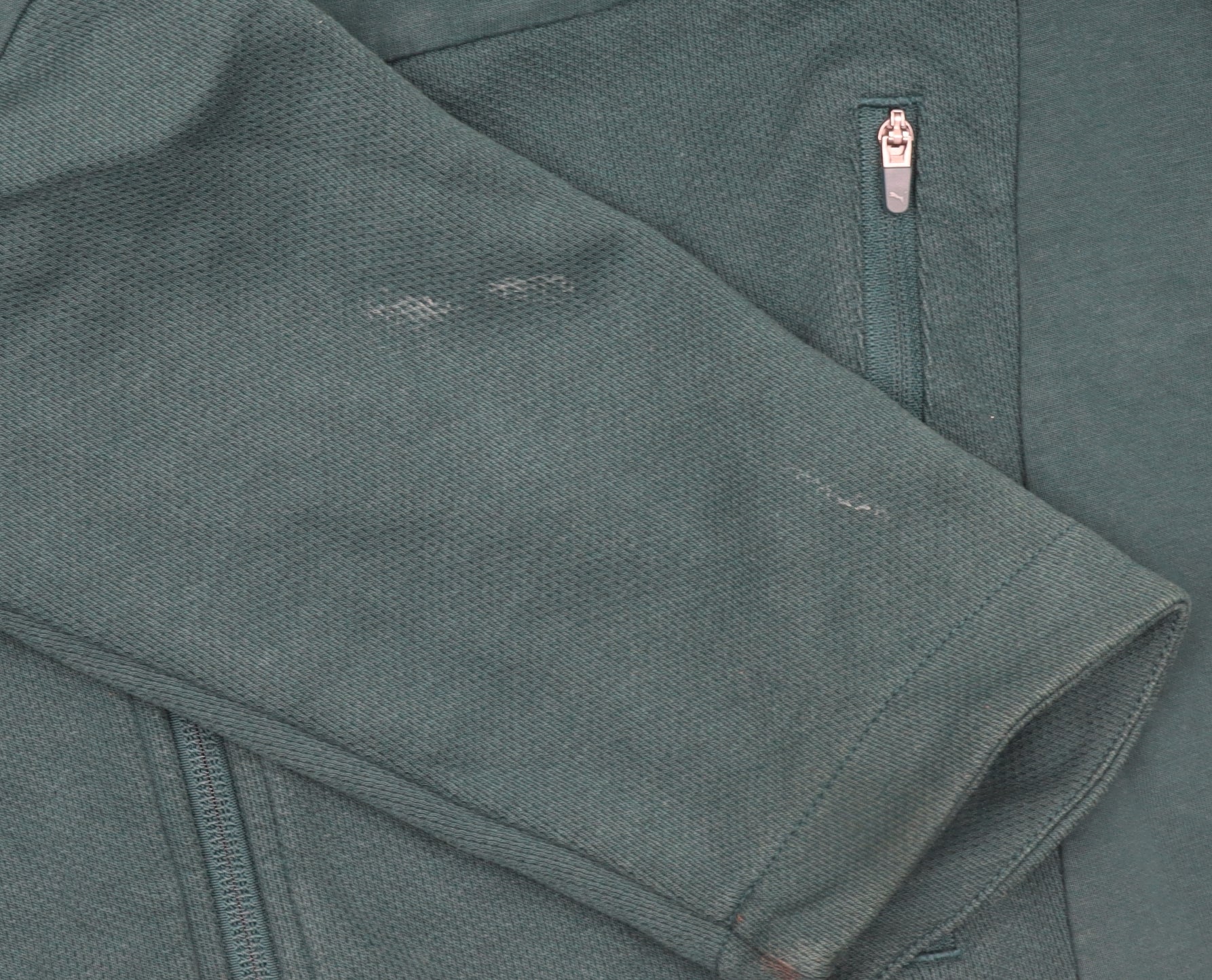 Elevate your casual and athletic wardrobe with this stylish men's green full zip hoodie from Puma. Designed for comfort and performance, this sporty hoodie combines practicality with sleek streetwear style. Crafted from a blend of cotton, polyester, and elastane, it delivers flexibility, durability, and breathability—perfect for training sessions, gym workouts, or relaxed weekend wear. The soft jersey fabric feels comfortable against the skin, while the high-quality construction ensures long-lasting use. The design features a full front zip closure, convenient zippered side pockets for secure storage, and an adjustable hood that helps protect against cooler weather. The subtle Puma logo accent on the chest adds a touch of the brand’s signature flair without overpowering the minimalist look. The lightweight yet insulating material makes it ideal for layering through autumn, spring, and winter. With a regular fit that provides ease of movement, this hoodie is as functional as it is stylish. Suitable for gym training, running, football, or everyday casual outfits, this piece transitions seamlessly from activewear to streetwear. Although pre-owned, it remains in very good condition with only light wear visible on the sleeve area, reflecting careful previous use. Easy to care for with machine washability, it continues to hold its shape and colour after washing. Perfect for men who appreciate comfortable, reliable clothing with a sporty edge, this versatile hoodie will pair effortlessly with joggers, jeans, or training shorts. A practical and fashionable addition to any wardrobe, made by Puma—a trusted brand known for performance and quality.