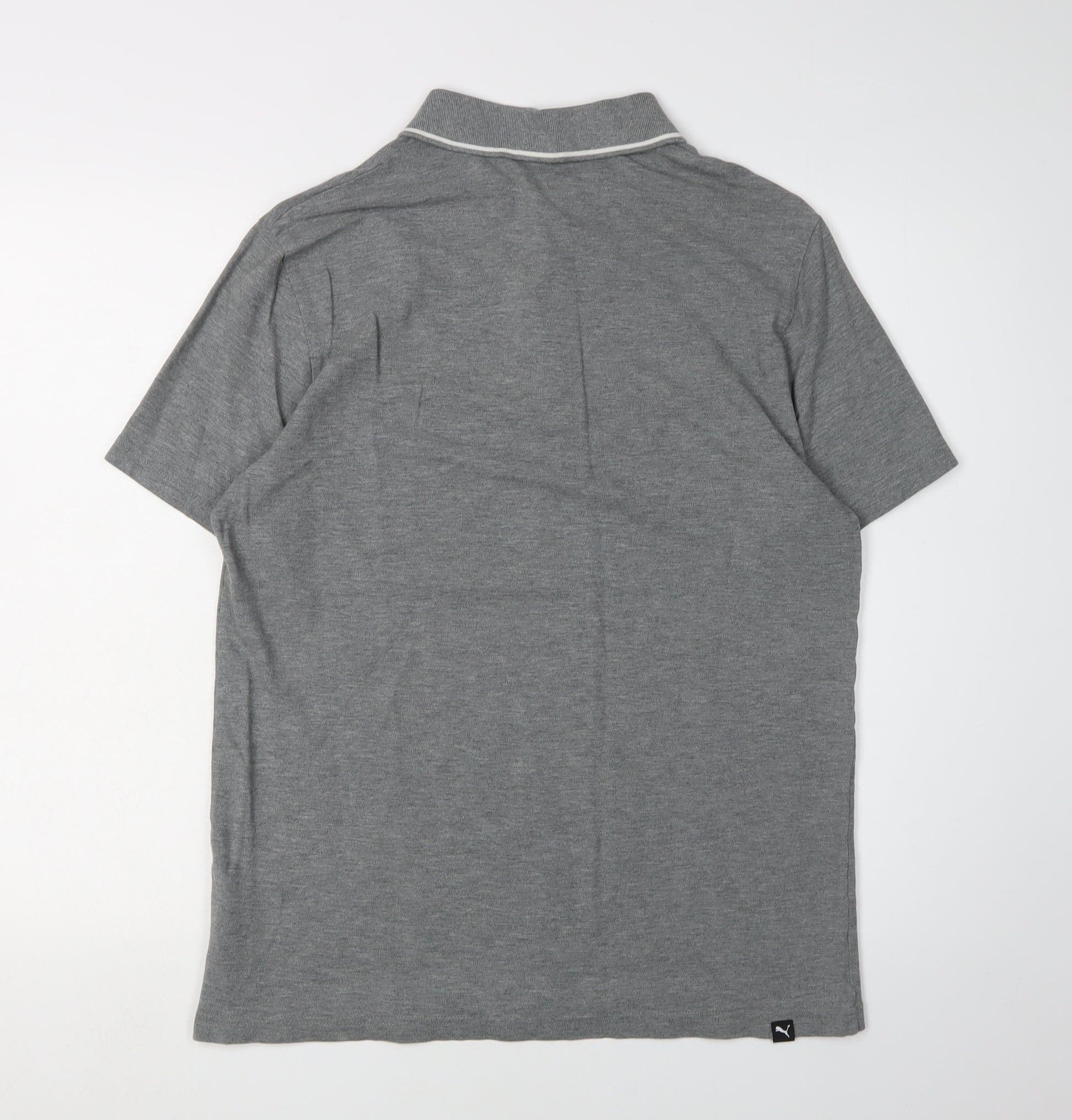 Explore casual elegance with this Puma Men's Polo Shirt. Crafted from 100% cotton, it offers exceptional comfort and breathability, making it perfect for all-day wear. The solid grey colour pairs effortlessly with your casual wardrobe, ensuring you look stylish whether you're heading to a social event or enjoying a relaxed weekend. Featuring a classic collared neckline and short sleeves, this polo shirt is both timeless and versatile. The iconic Puma logo accents the chest, providing a touch of branded flair that resonates with sports enthusiasts and fashion aficionados alike. Its regular fit offers a flattering silhouette, while the button closure allows for adjustable comfort. Designed for machine washability, this polo shirt is easy to maintain, keeping your style hassle-free. Although pre-owned, its excellent condition ensures that it remains a valuable addition to your collection. Ideal for casual occasions and all seasons, this shirt allows you to dress with confidence. Ideal for those who appreciate style blended with comfort, this polo shirt is your go-to choice for a polished yet laid-back appearance. Don't miss out on owning this standout piece that promises to elevate your wardrobe effortlessly.