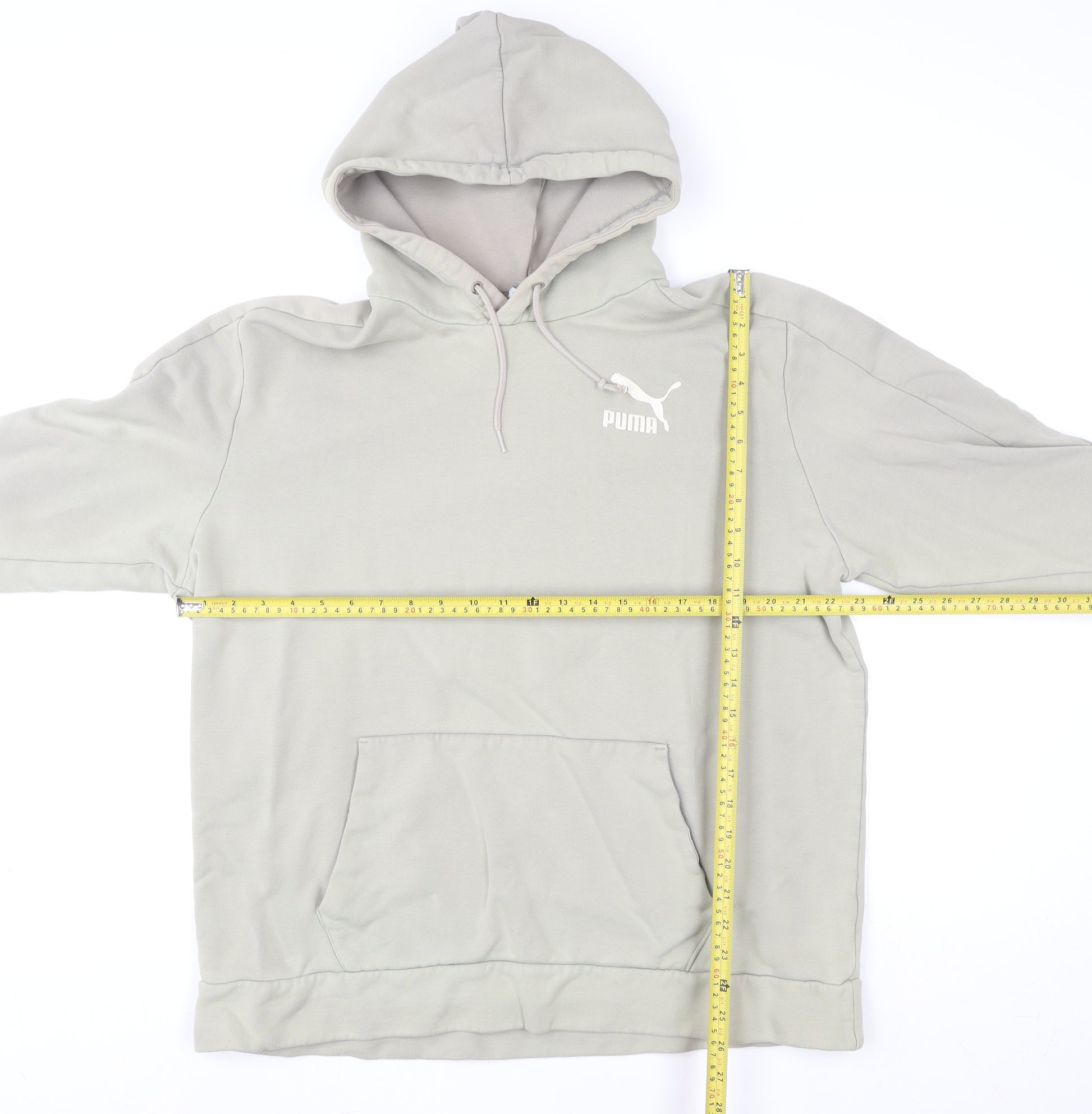 Step out in laid-back comfort with this stylish grey pullover hoodie from Puma. Crafted for women, this sweatshirt features a classic hooded design with a drawstring closure and the signature Puma logo printed on the chest for a touch of sporty appeal. The soft blended fabric makes it perfect for all-day wear whether you’re lounging at home, running errands, or heading out for a casual day out. The kangaroo pocket offers practicality and warmth for your hands or essentials. Designed with a regular fit that flatters without being restrictive, it’s ideal for pairing with joggers, jeans, or leggings. This versatile grey hoodie is suitable for all seasons, offering comfort and effortless streetwear style. A great addition for women who value quality, comfort and classic sportswear aesthetics. Excellent condition with minor signs of gentle wear, this hoodie retains its softness and structure, making it a fantastic option for anyone who loves classic Puma sports fashion. Perfect for casual, gym, or leisure outfits — this hoodie blends style and function seamlessly.