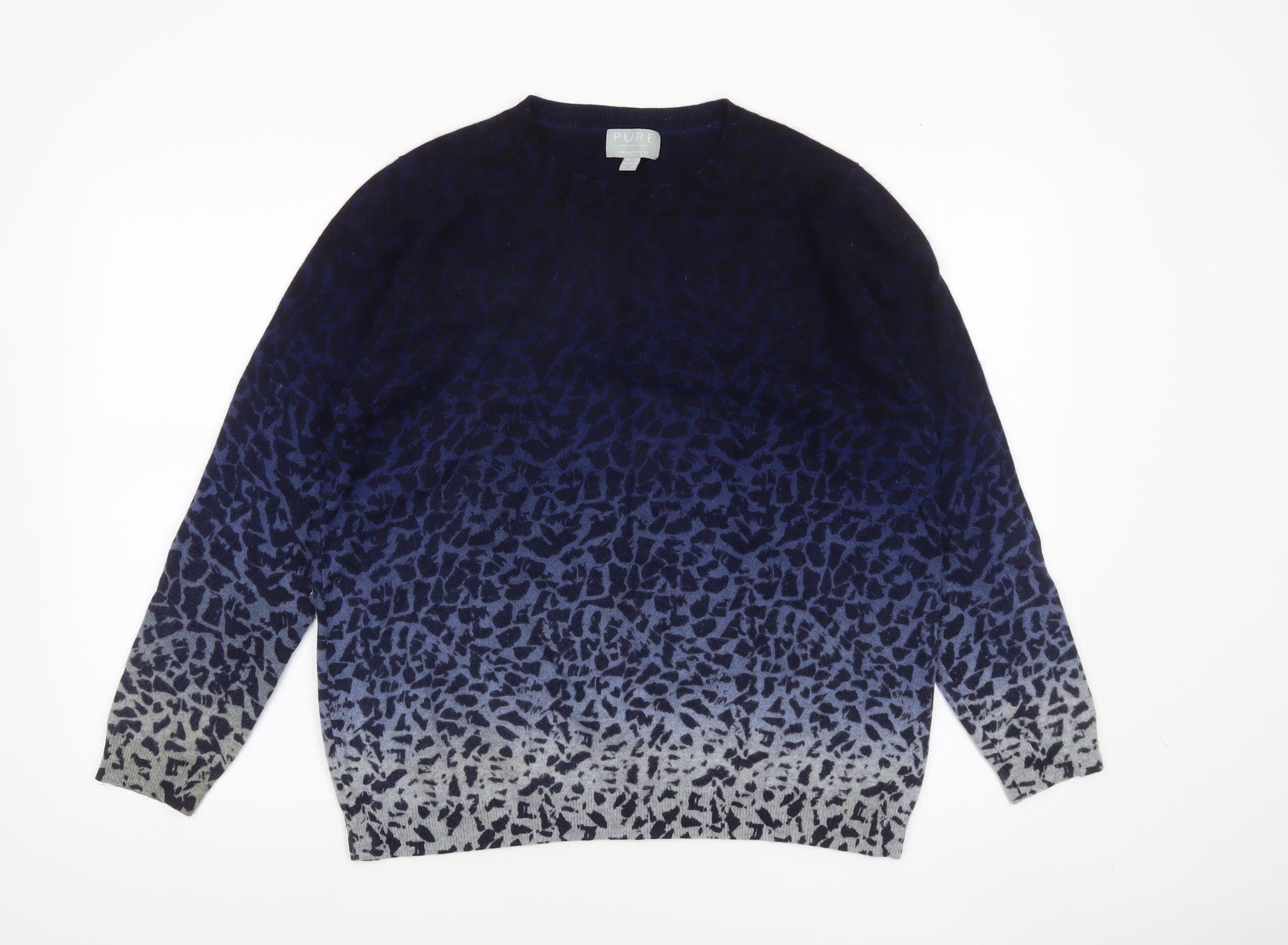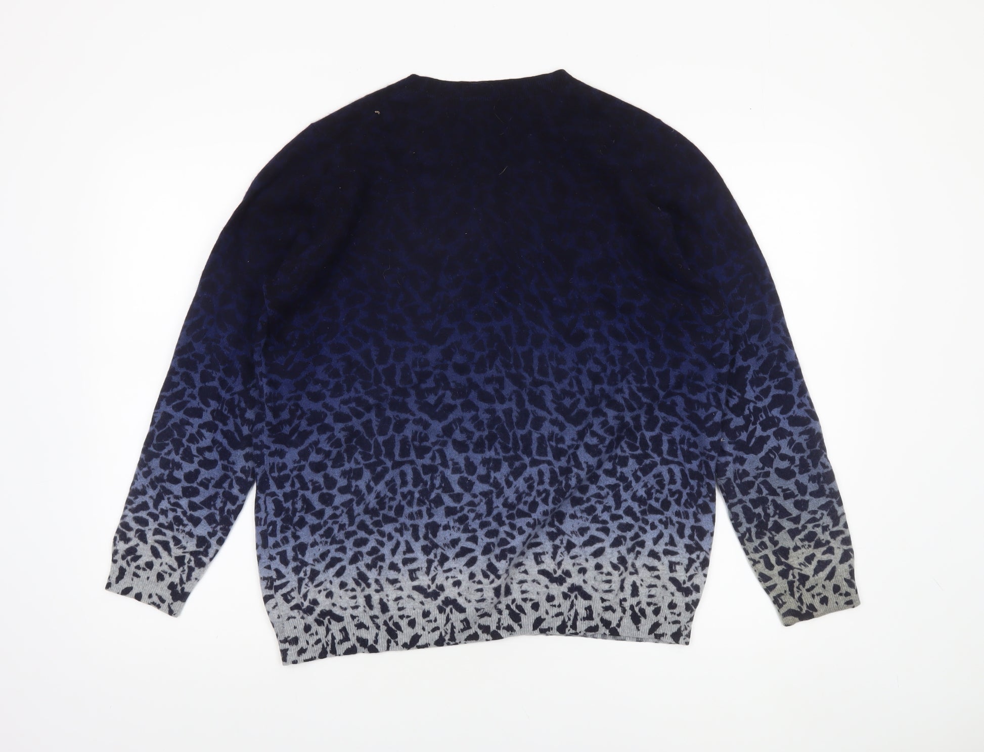 Elevate your knitwear collection with this luxurious Pure Collection women’s jumper, crafted entirely from the finest 100% cashmere for a sumptuously soft feel. Designed in a stylish gradient blue animal print, it seamlessly blends elegance and comfort, making it a standout choice for cooler seasons. The lightweight yet warm knit ensures superior comfort, while the premium tight-knit cashmere provides natural insulation without adding bulk. This women’s pullover jumper features a classic crew neckline and long sleeves, offering a flattering and timeless silhouette suitable for everyday wear or relaxed weekends. Its exquisite ombré effect moves from deep navy through to a soft grey, creating a sophisticated tonal finish that adds refined depth to any outfit. Pair it with jeans for chic casual style, or layer it over tailored trousers for a sleek smart-casual look. The Pure Collection brand is celebrated for exceptional quality cashmere, sourced with ethical care and precision craftsmanship. Ideal for autumn and winter, its breathable yet insulating fibres make it an elegant piece that transitions effortlessly between crisp outdoor days and cosy indoor moments. The knit fabric’s animal print keeps the design contemporary, while its relaxed regular fit ensures all-day ease. This pre-loved jumper remains in excellent condition, showing only the lightest signs of gentle wear, assuring lasting comfort and style. For care, hand wash only to preserve the softness and shape of the cashmere. Perfect for those who appreciate understated luxury, this jumper encapsulates timeless sophistication in a wardrobe staple that delivers warmth, texture, and effortless style.