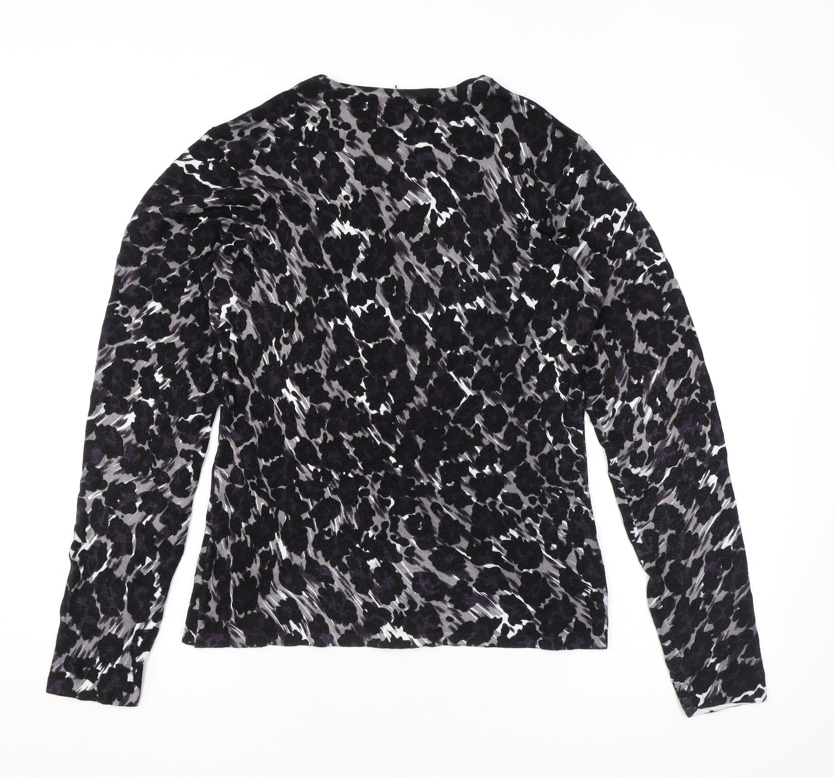Womens Black Animal Print Viscose Basic Blouse Size 14 Round Neck - Leopard Print