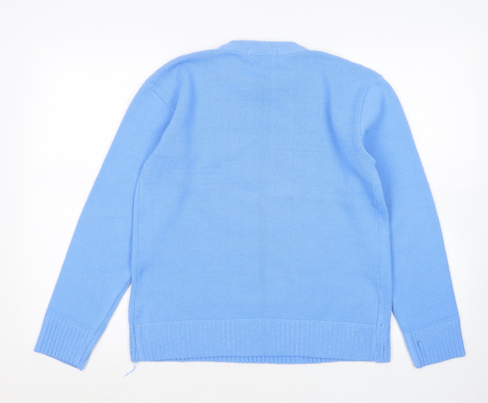Womens Blue Round Neck Acrylic Pullover Jumper Size S