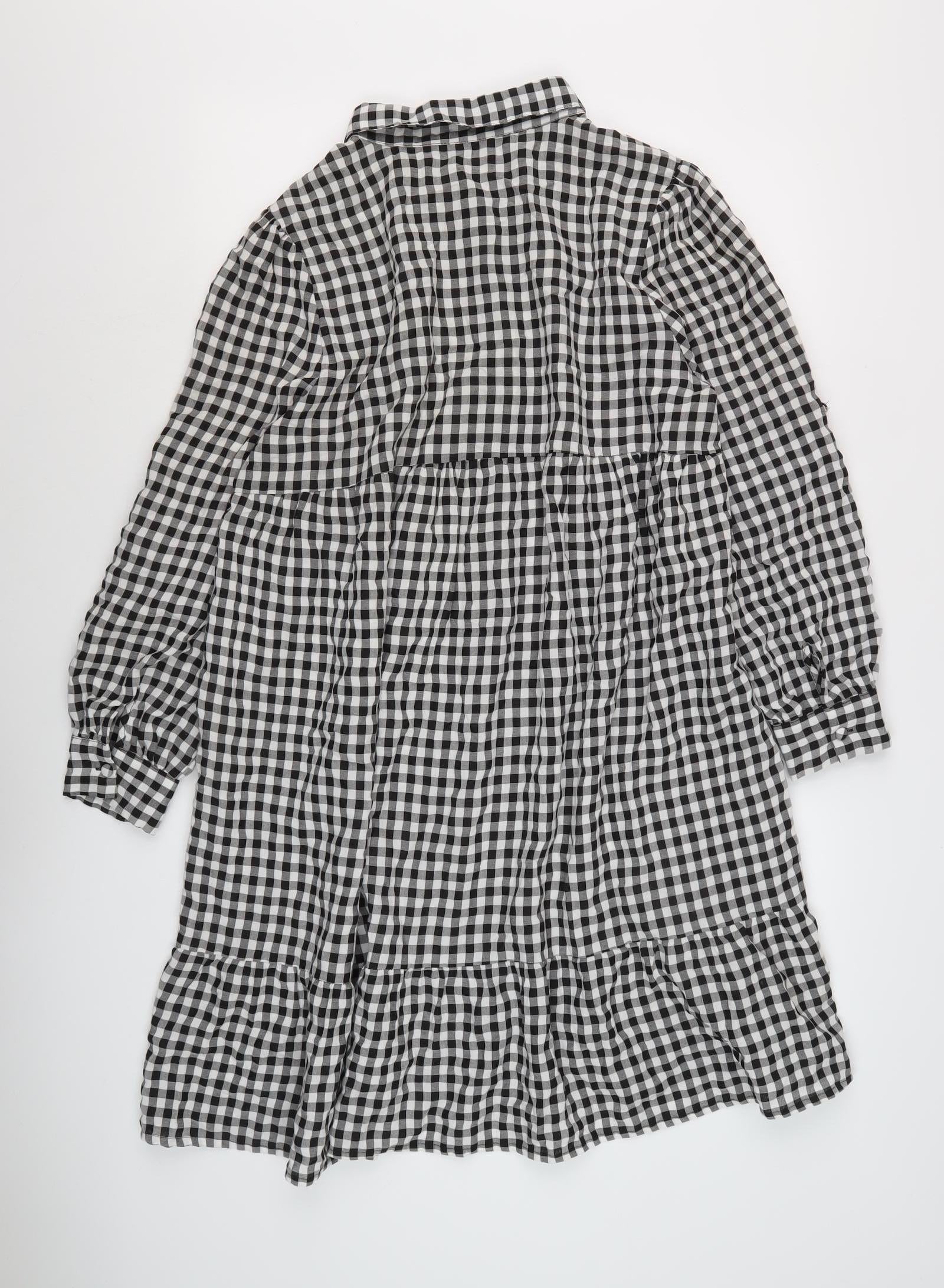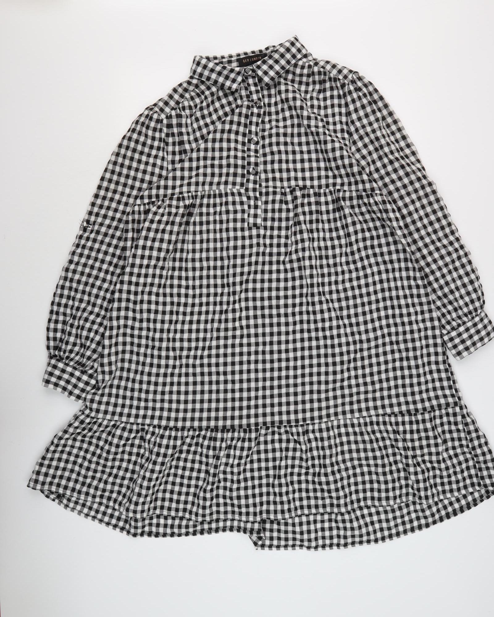 Introducing the chic and versatile QED London Women's Black Gingham Shirt Dress, perfect for adding a touch of modern classic style to your wardrobe. Designed with meticulous attention to detail, this dress is crafted from a comfortable blend of 50% Polyester and 50% Viscose, ensuring a soft and pleasant feel, while maintaining durability. This collared shirt dress features a timeless black gingham pattern, delivering a polished yet relaxed look suitable for various occasions. The long sleeves and button closure add a touch of sophistication, making it ideal for both work and casual outings. With a flattering size 14 fit, it caters to regular measurements, offering comfort without compromising on style. Its machine washable nature ensures easy maintenance, allowing you to look your best without the hassle. Whether you're heading to a casual gathering or simply running errands, this shirt dress offers the perfect blend of style and comfort, making it a must-have addition to your collection. Embrace effortless elegance with this trendy QED London dress, guaranteed to make heads turn wherever you go.