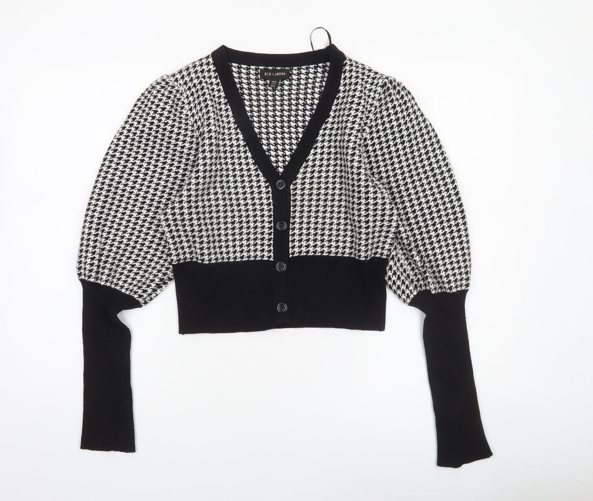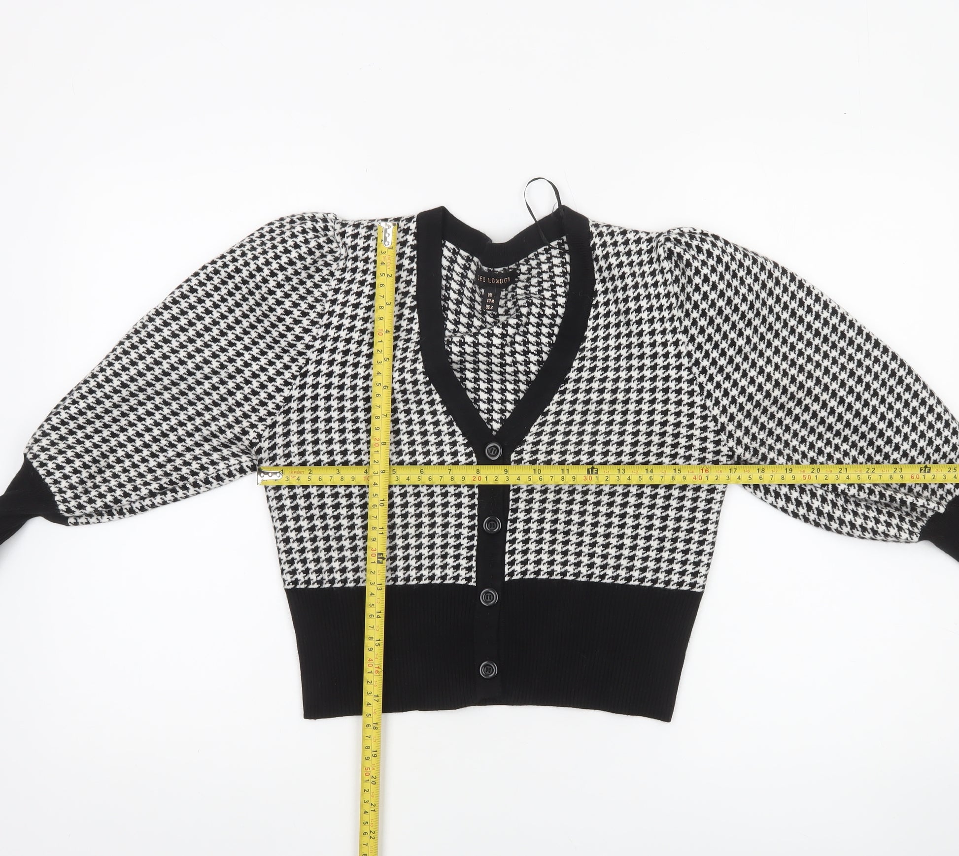 Womens Black Houndstooth V-Neck Cardigan Size M