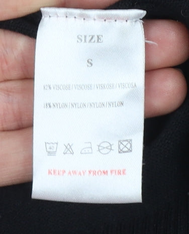 Zara Women Black Viscose Beaded Sleeve V-Neck Jumper Size S