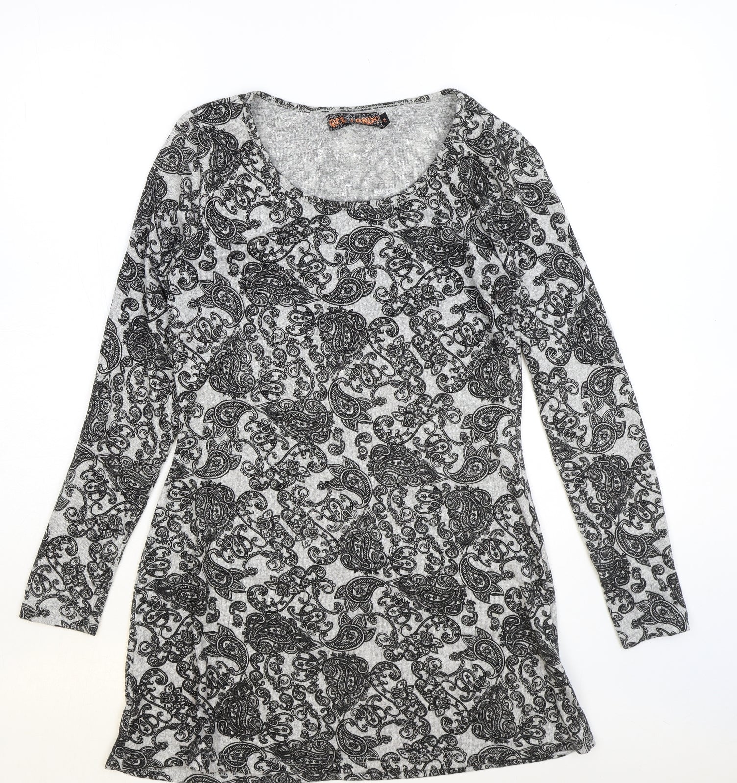 Womens Grey Paisley Polyester A-Line Size M Scoop Neck Pullover