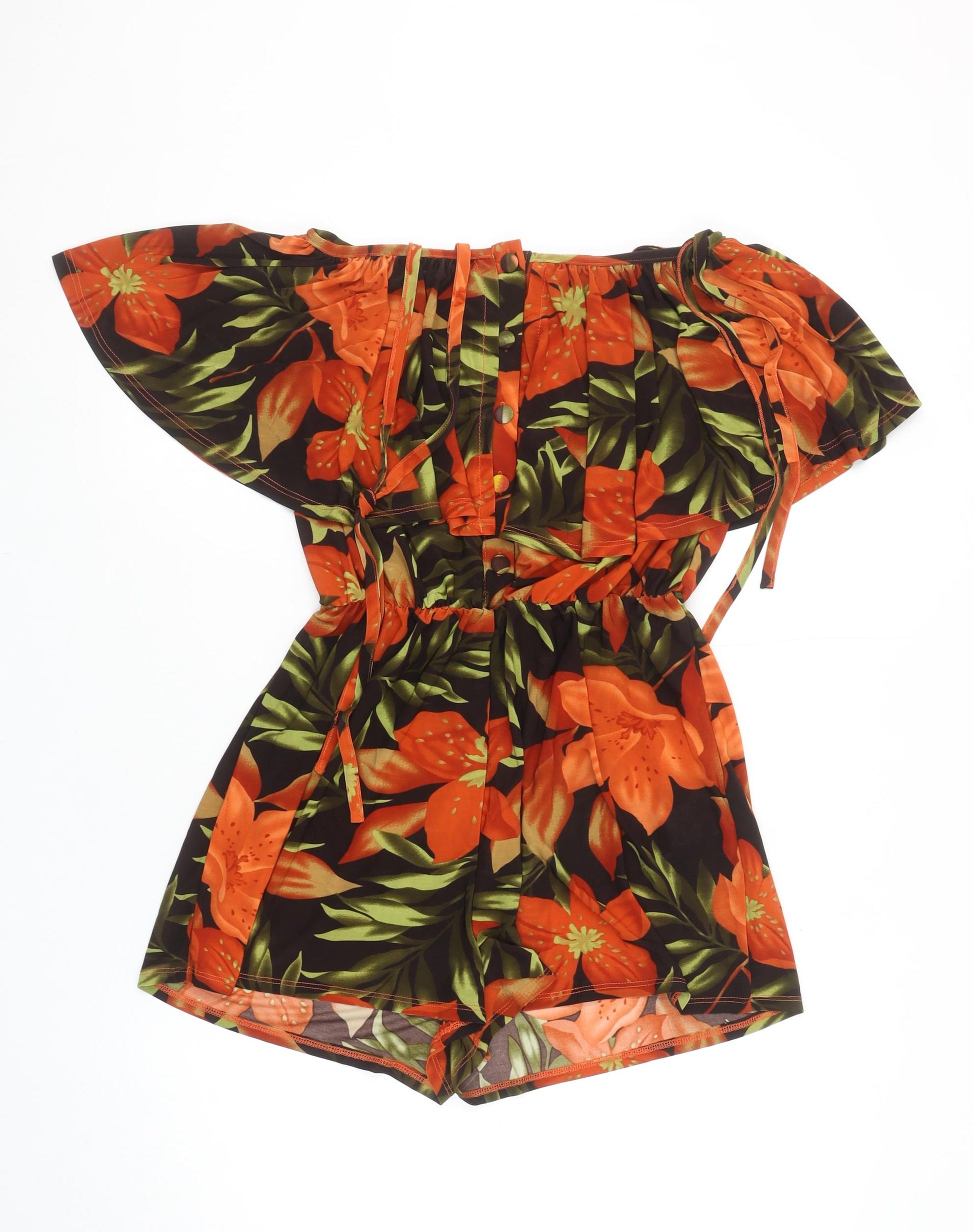 Women's Orange Floral Off Shoulder Playsuit Size M