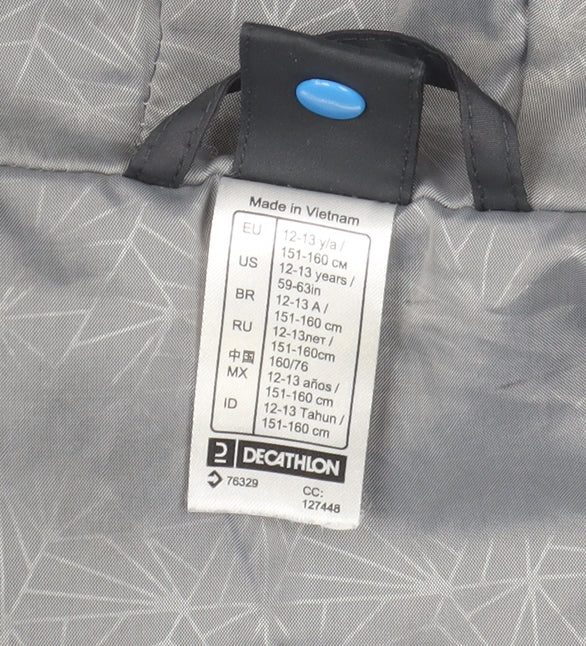 Keep your young explorer protected from the elements with this excellent-quality Quechua boys' waterproof jacket. Designed by Decathlon, this black hooded parka is ideal for hiking, walking, or everyday outdoor adventures. Constructed from a durable blend of polyamide and polyester, the outer shell provides a reliable waterproof and windproof barrier while maintaining breathability and comfort. The jacket features a full blue zip fastening, multiple zipped pockets for secure storage, and an adjustable hood and cuffs for a snug, weather-resistant fit. Its soft polyester lining ensures warmth and comfort, making it perfect for the cooler autumn and winter months. The design is simple yet functional, with a clean black finish accented by bright blue zips for a sporty touch. Whether heading to school, on a family hike, or just playing outside, this Quechua jacket is built to handle it all. The practical mid-length cut provides full coverage without restricting movement, and the hardwearing softshell fabric gives long-lasting durability. In excellent pre-loved condition with no tears, stains, or visible signs of damage, this piece shows minimal wear and retains its shape and performance. Ideal for those who value quality outdoor gear at an affordable price, the jacket combines Quechua’s trusted design with functional features to keep your child warm, dry, and ready for adventure. Machine washable for easy care, this is a reliable outerwear choice that delivers both comfort and performance. A great addition to any young boy’s wardrobe, this Quechua waterproof jacket offers the perfect mix of outdoor practicality and style.