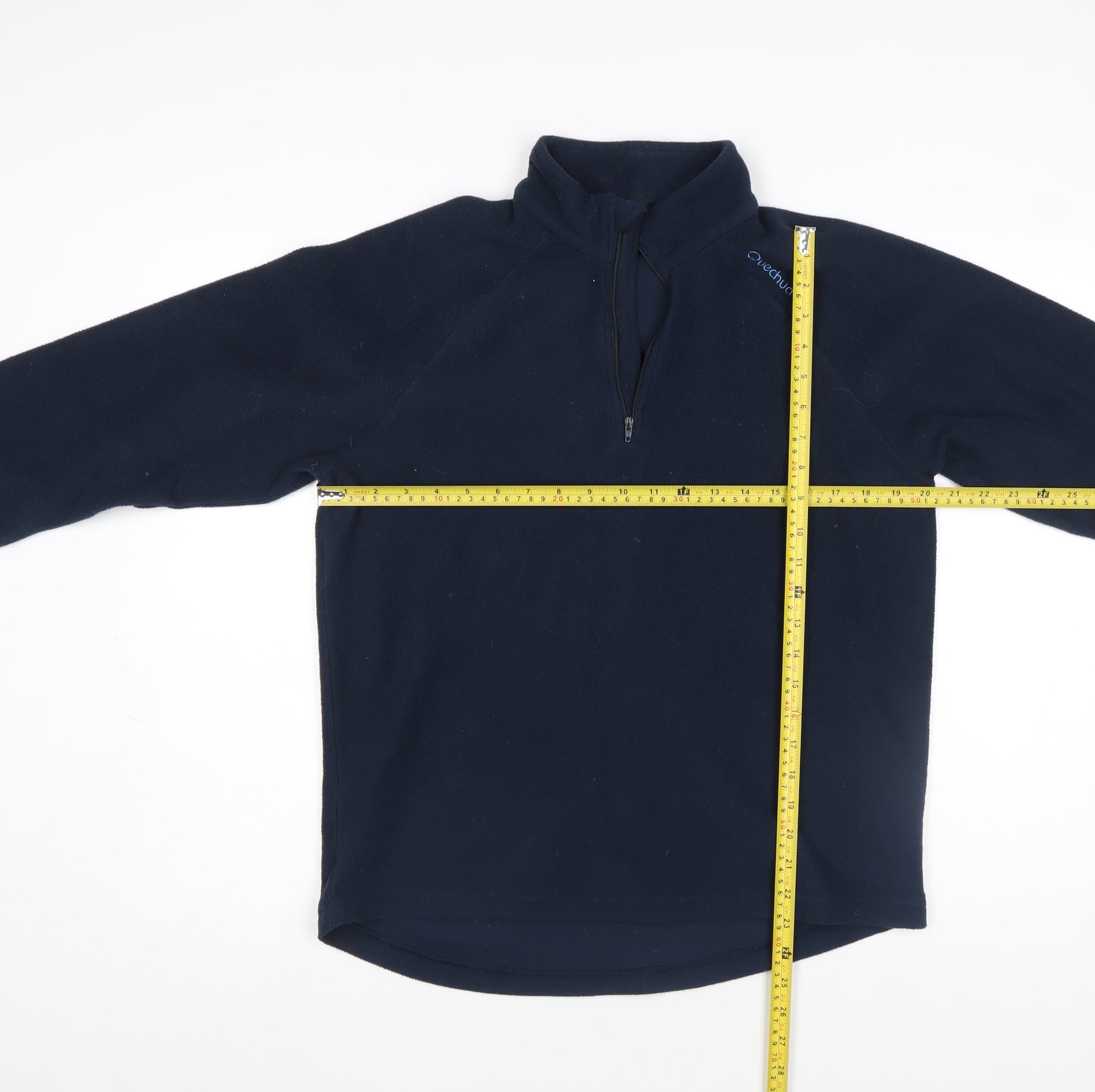 Stay warm and comfortable on your outdoor adventures with this Quechua men’s navy blue fleece pullover. Designed for performance and practicality, this lightweight long-sleeve top provides excellent warmth without bulk, making it perfect for active pursuits such as hiking, walking, or camping. The soft fleece fabric crafted from 100% polyester ensures cosy insulation while allowing breathability during movement. The 1/4 zip front lets you adjust ventilation easily, while the stand-up collar helps retain warmth on chilly days. The pullover design with raglan sleeves offers unrestricted ease of movement and a classic athletic fit ideal for layering under a jacket or wearing alone. Its solid navy colour gives a clean, versatile look suited to both outdoor trails and casual everyday wear. Durable and quick-drying, it’s a practical addition to any active wardrobe. Machine washable for easy care, it combines function, comfort, and style in one dependable garment. In very good used condition with only minor linting but no visible defects, this fleece top delivers reliable performance at an affordable price. Ideal for the colder months of autumn and winter, it’s a warm essential for men who enjoy the outdoors year-round. Whether you’re heading for a brisk walk, a weekend hike, or just running errands, this Quechua fleece keeps you comfortable and looks great doing it. Add reliable warmth and outdoor functionality to your activewear collection today.