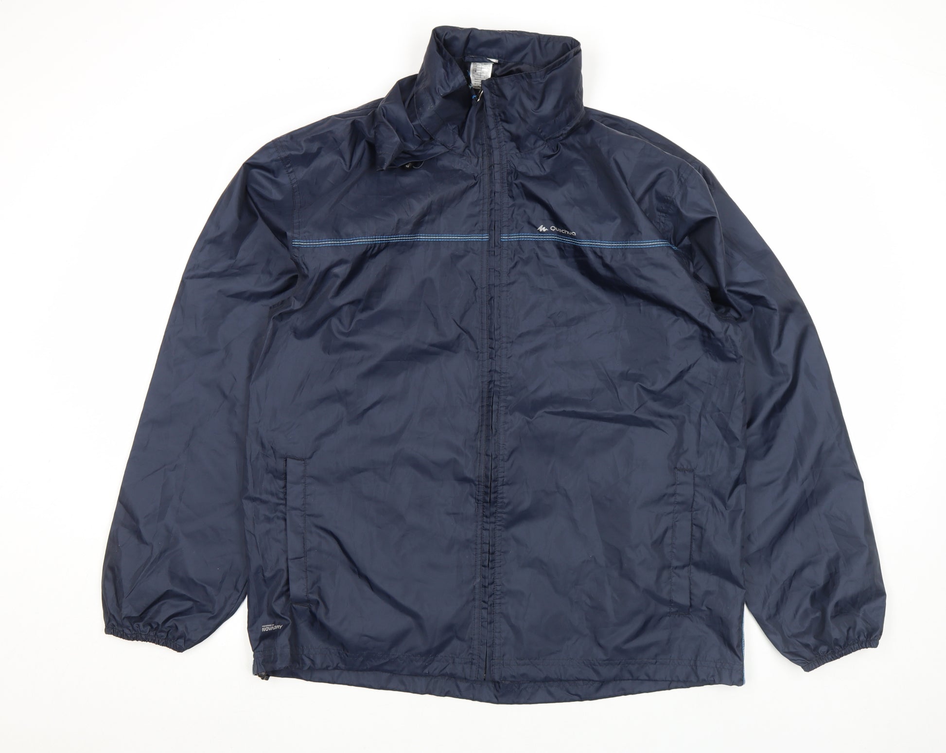 This Quechua Men's Blue XL Windbreaker Jacket is designed for outdoor comfort, practicality, and a classic activewear style. Crafted from durable polyamide with a polyester lining, it delivers excellent wind protection while remaining lightweight and easy to pack for travel or hiking adventures. The jacket features a full front zip for adjustable ventilation, a stand-up collar for added weather defence, and elasticated cuffs and waist to ensure a snug fit that helps keep out the chill. Two practical side pockets provide convenient storage for small essentials, making it an ideal choice for everyday wear or outdoor pursuits. The blue colour gives it a versatile, timeless appearance that pairs well with casual or sport-inspired outfits. The minimal logo accent on the chest adds a subtle branded touch without overpowering its clean design. The water-resistant and windproof properties make it suitable for blustery spring or autumn days, and its breathable build enhances all-day comfort during walking, hiking or travel. Lightweight yet durable, this jacket folds easily into a rucksack or travel bag, perfect for unpredictable weather or layering with other garments. Its regular fit ensures easy movement and flexibility, providing comfort whether you're setting out on a countryside hike or running daily errands. With its combination of functionality and dependable style, this Quechua XL jacket is a reliable addition to any wardrobe for the active man. Condition is very good with only light wear and no visible damage, offering great value for versatile outdoor layering.