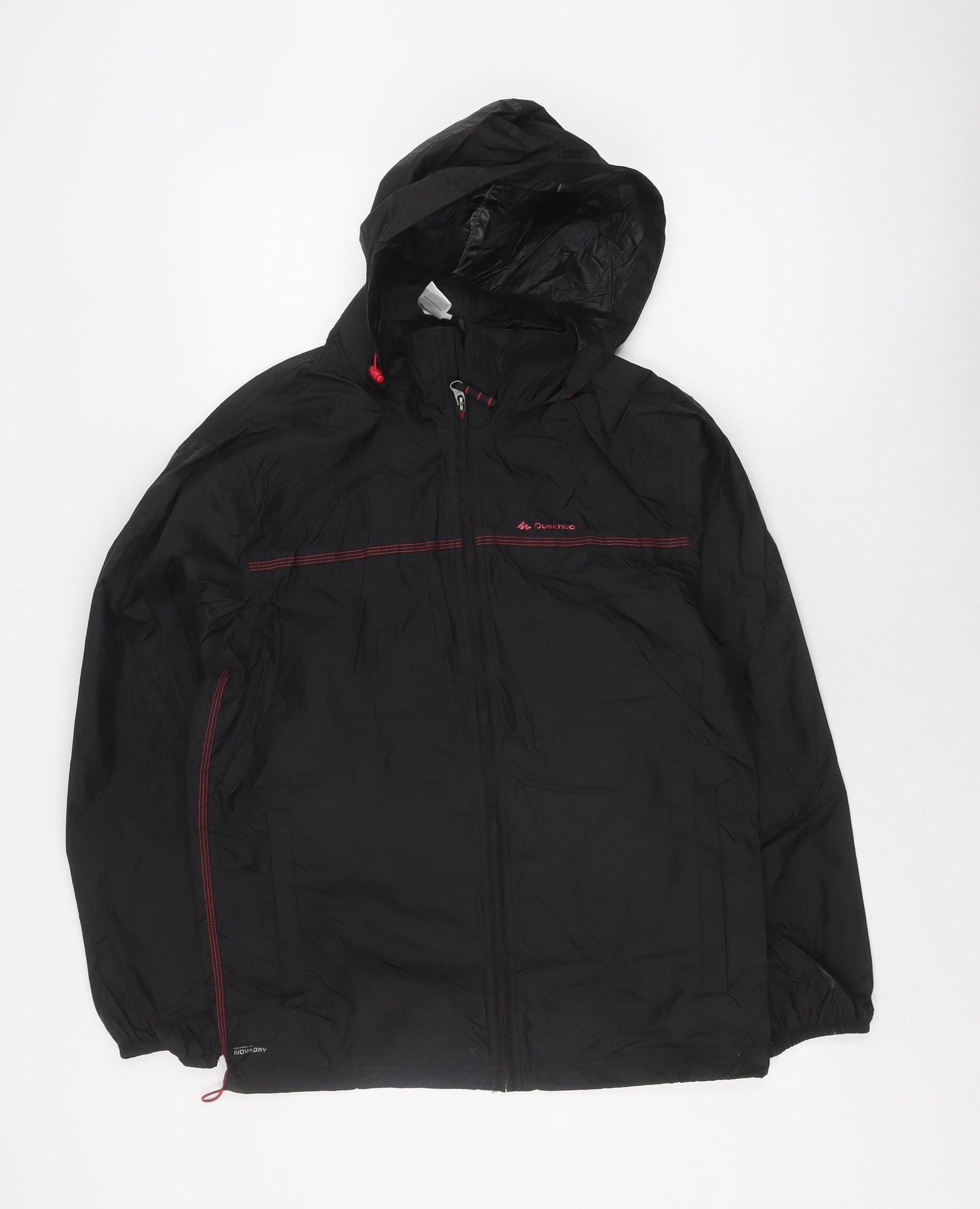 Elevate your outerwear collection with this Quechua unisex windbreaker jacket, perfect for breezy autumn and refreshing spring days. Designed with practicality in mind, this sleek black jacket features a convenient hood and full zip closure to shield you from unpredictable weather. The regular fit ensures a comfortable wear for both men and women, making it a versatile choice for any wardrobe. Made from 100% polyamide, it offers durability and water resistance, suitable for casual outings or travel adventures. The mid-length cut and minimalist design add a modern touch, while the lightweight fabric keeps you comfortable and unrestricted. Whether you're hiking, cycling, or simply strolling through the city, this jacket's functionality and style will keep you looking sharp. With its hard-wearing build and classic appeal, it's an outdoor essential that promises timeless wear. Grab this lightly used jacket in excellent condition today and embrace every journey with confidence.