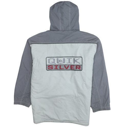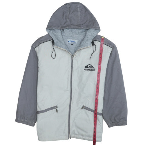 This Quiksilver men’s hooded windbreaker jacket is perfect for everyday wear, offering a combination of modern surf-inspired style and practical comfort. Designed in a two-tone grey colourway, this lightweight jacket features a full zip fastening, adjustable drawstring hood, and two zip pockets for essential storage. The classic Quiksilver logo is displayed on the chest and in a bold embroidered design across the back, adding a distinctive touch. Crafted from durable polyester with a soft fleece lining, it provides cosy warmth and breathability, ideal for transitional seasons such as spring and autumn. The regular fit ensures ease of movement and a relaxed silhouette suitable for layering over jumpers or t-shirts. With its mid-length cut, the jacket offers excellent coverage against light wind and cool air, making it a versatile addition to any casual wardrobe. Practical details such as elasticated cuffs and microfibre fabric construction enhance the wind-resistant performance, while maintaining a comfortable feel. Perfect for walking, travel, skateboarding or simply casual everyday wear, this Quiksilver jacket embodies laid-back coastal style combined with everyday functionality. Whether worn on windy beach days, weekend adventures or city outings, it delivers reliable warmth without bulk. Its easy-care polyester shell allows for convenient machine washing, ensuring this piece remains a low-maintenance wardrobe staple. Overall, this Quiksilver hooded jacket captures the brand’s signature blend of surf heritage and modern street utility, making it a must-have for men who value both comfort and style in their outerwear.
