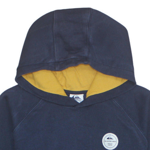 Bring coastal energy and casual comfort to your wardrobe with this Quiksilver pullover hoodie. Designed for everyday wear, this hoodie combines sporty surf style with classic Quiksilver quality. It features a navy blue exterior with a contrasting mustard yellow hood lining, creating a distinctive and modern look. The design includes a comfortable hood, a front kangaroo pocket for convenience, and ribbed cuffs and hem with bold yellow and white stripe detailing for a snug fit.Crafted with a blend of soft and durable fabrics, this hoodie offers a relaxed, comfortable feel perfect for layering over T-shirts or under jackets. The midweight fleece interior makes it suitable for all seasons, especially cooler spring and autumn days. The Quiksilver logo patch on the chest adds authentic surfwear branding, enhancing its stylish appeal while maintaining a minimalist tone.Ideal for active teens or anyone seeking a laid-back yet polished streetwear look, this hoodie suits casual occasions, outdoor activities, or simply lounging in comfort. Its pullover closure keeps the design practical and fuss-free, offering easy wear throughout your day. Pair it with jeans, joggers, or shorts for effortless versatility — a true staple in any wardrobe.In very good pre-owned condition, this item shows minimal signs of wear and retains its original shape and colour. A great choice for fans of relaxed surf-inspired style, this Quiksilver hoodie blends durability, comfort, and aesthetic appeal. Whether you’re heading out to the coast or relaxing at home, it’s the perfect piece for keeping warm while staying effortlessly cool.