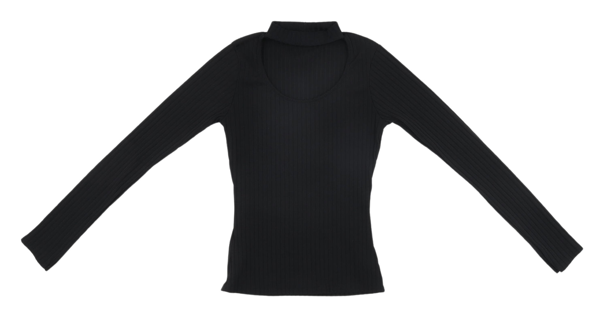 Black Slim Fit High Neck Long Sleeve Women's Top