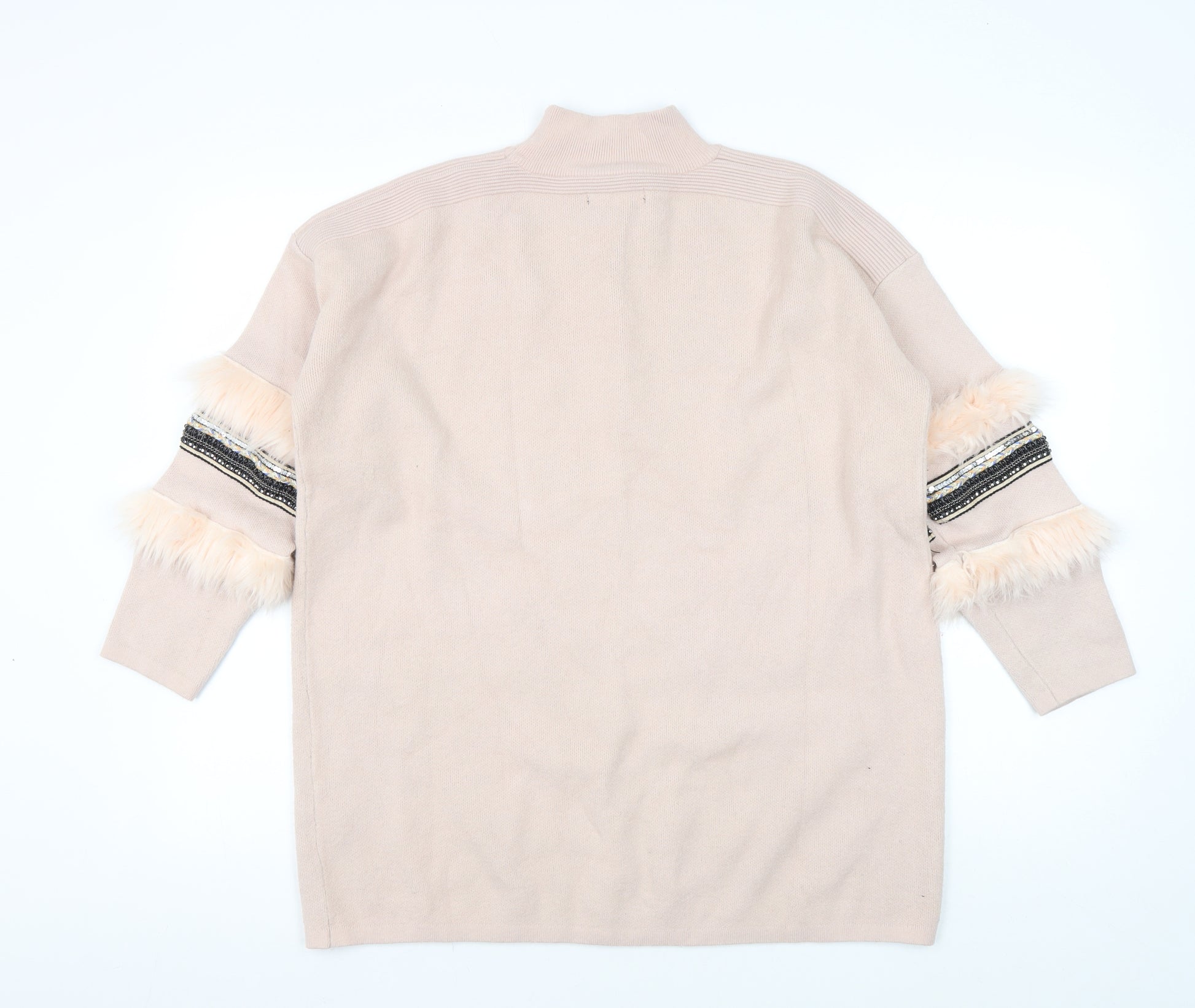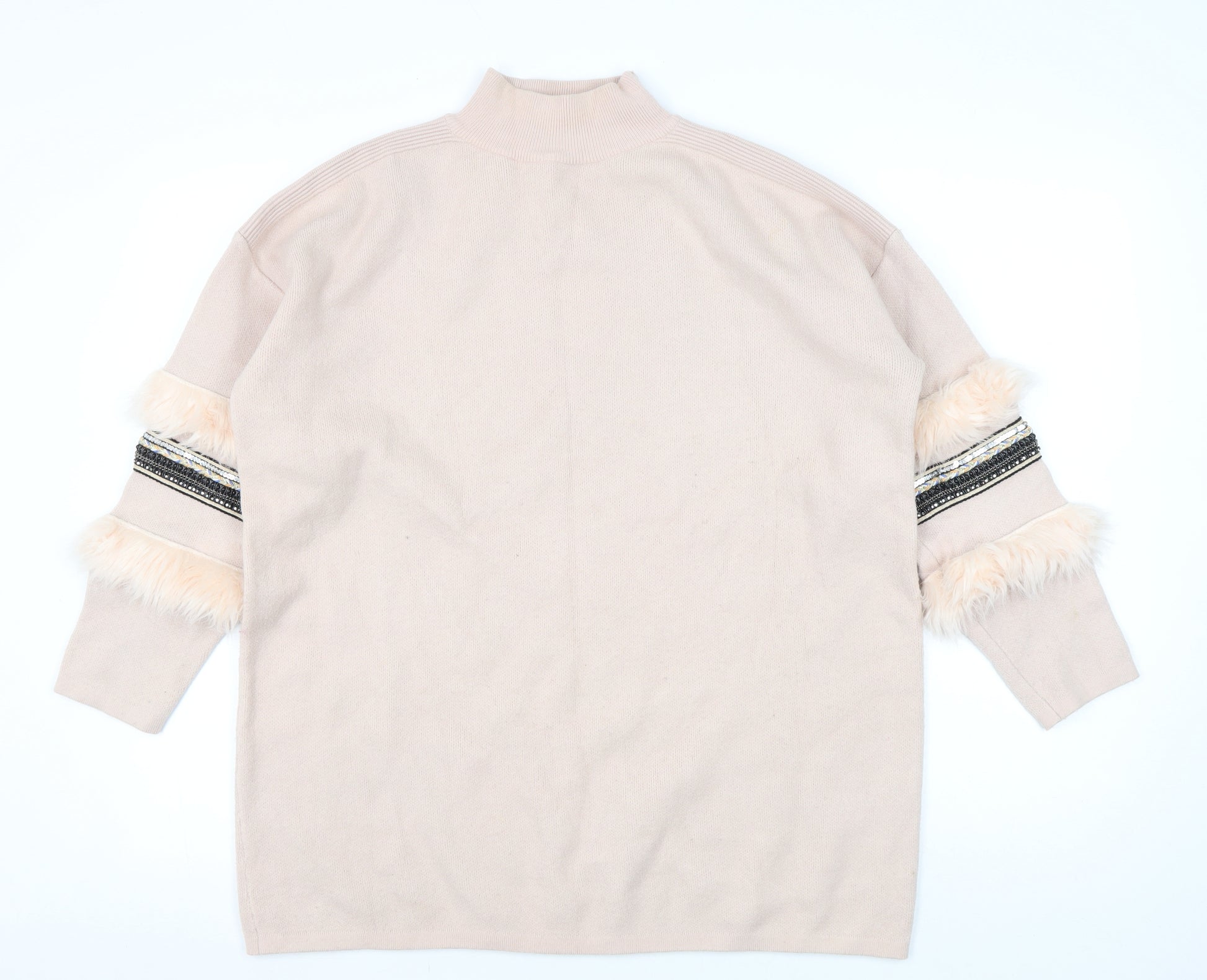 Step out in style this season with the Quiz Women's Beige Pullover Jumper. Perfect for both autumn and winter, this jumper combines comfort and fashion effortlessly. Its mock neck offers warmth and elegance, while the long sleeves feature eye-catching fur trim and embroidered accents, adding a touch of luxury to your outfit. Crafted from a blend of viscose, nylon, and polyester, this knit jumper is both soft and durable, ensuring longevity. Designed for casual outings, it's an essential piece for your wardrobe. Whether you're heading to a casual gathering or simply enjoying a day out, this jumper is versatile and stylish. Don't miss out on this fabulous addition to your collection.