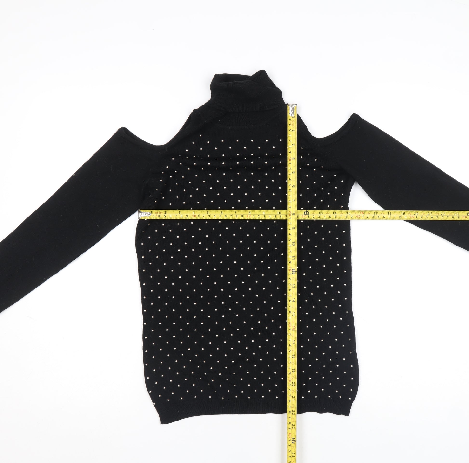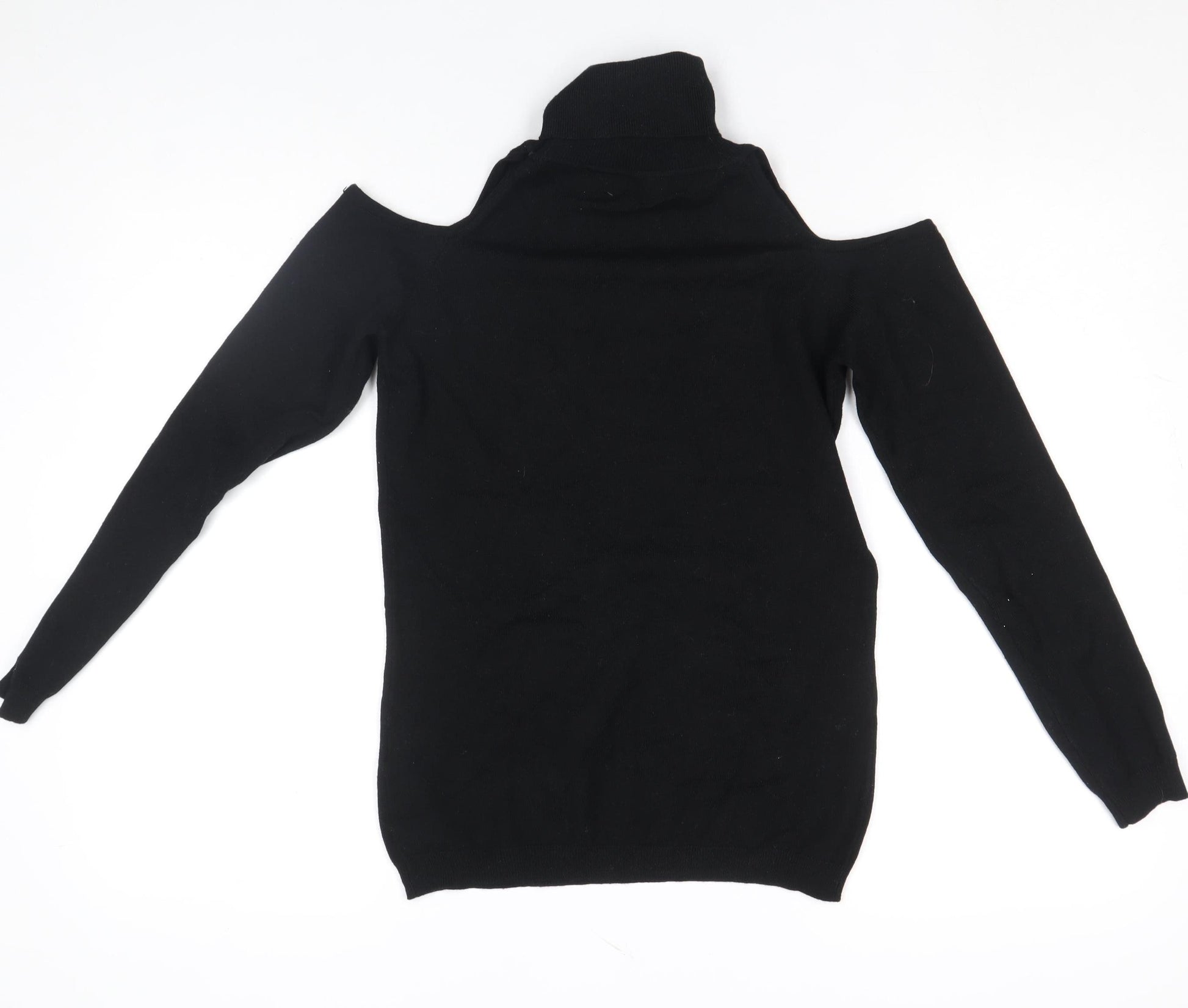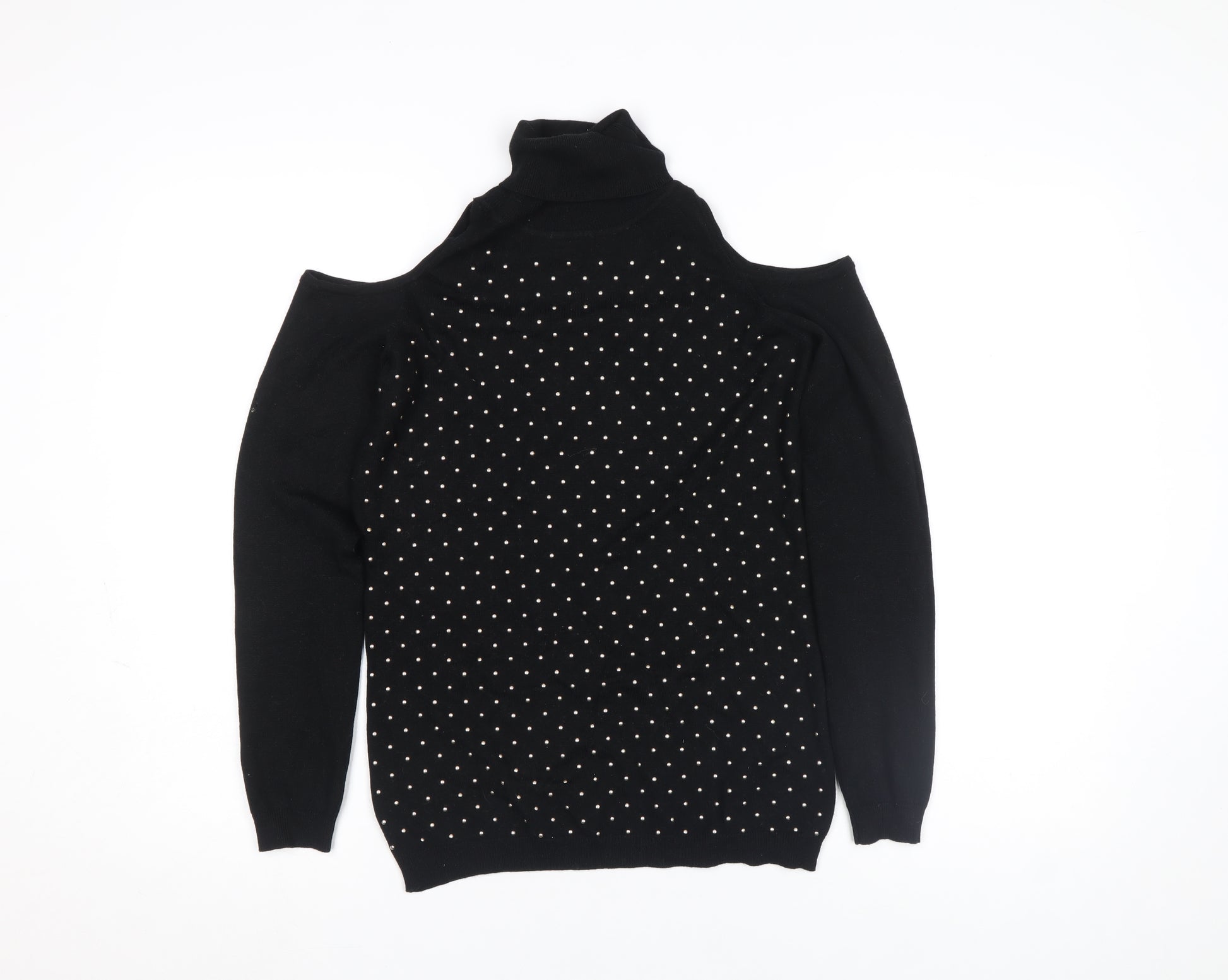 Women’s Black Beaded Cold Shoulder Roll Neck Knit Top Size S