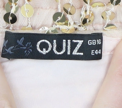 Women's Beige Sequin A-Line Party Dress Size 16
