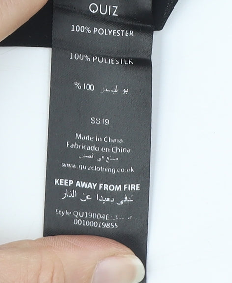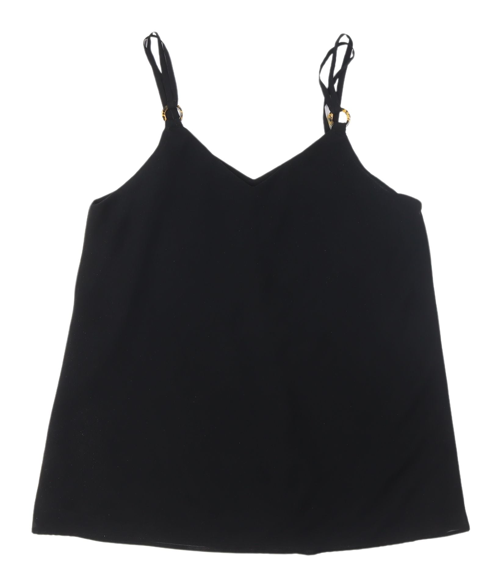 Discover elegance and style with this classic black camisole from Quiz, perfect for versatile wear. Crafted from 100% polyester, this tank top is designed for comfort and durability, making it a staple piece for any wardrobe. The regular fit and spaghetti straps lend a chic, airy feel that complements its sleek V-neck design. Ideal for summer and casual occasions, this solid black camisole can be easily layered with a jacket or worn as a standalone piece. Its lightweight and breathable fabric ensures all-day comfort, whether you're heading to a casual lunch or a relaxing day out. The new with tags condition ensures that you're getting a fresh, unused piece ready to enhance your collection. Dress it down with jeans for a laid-back look or pair it with a skirt for a more polished appearance. Embrace the simplicity and timeless appeal of this must-have women's top, and enjoy the versatility and effortless style it brings to your outfits.