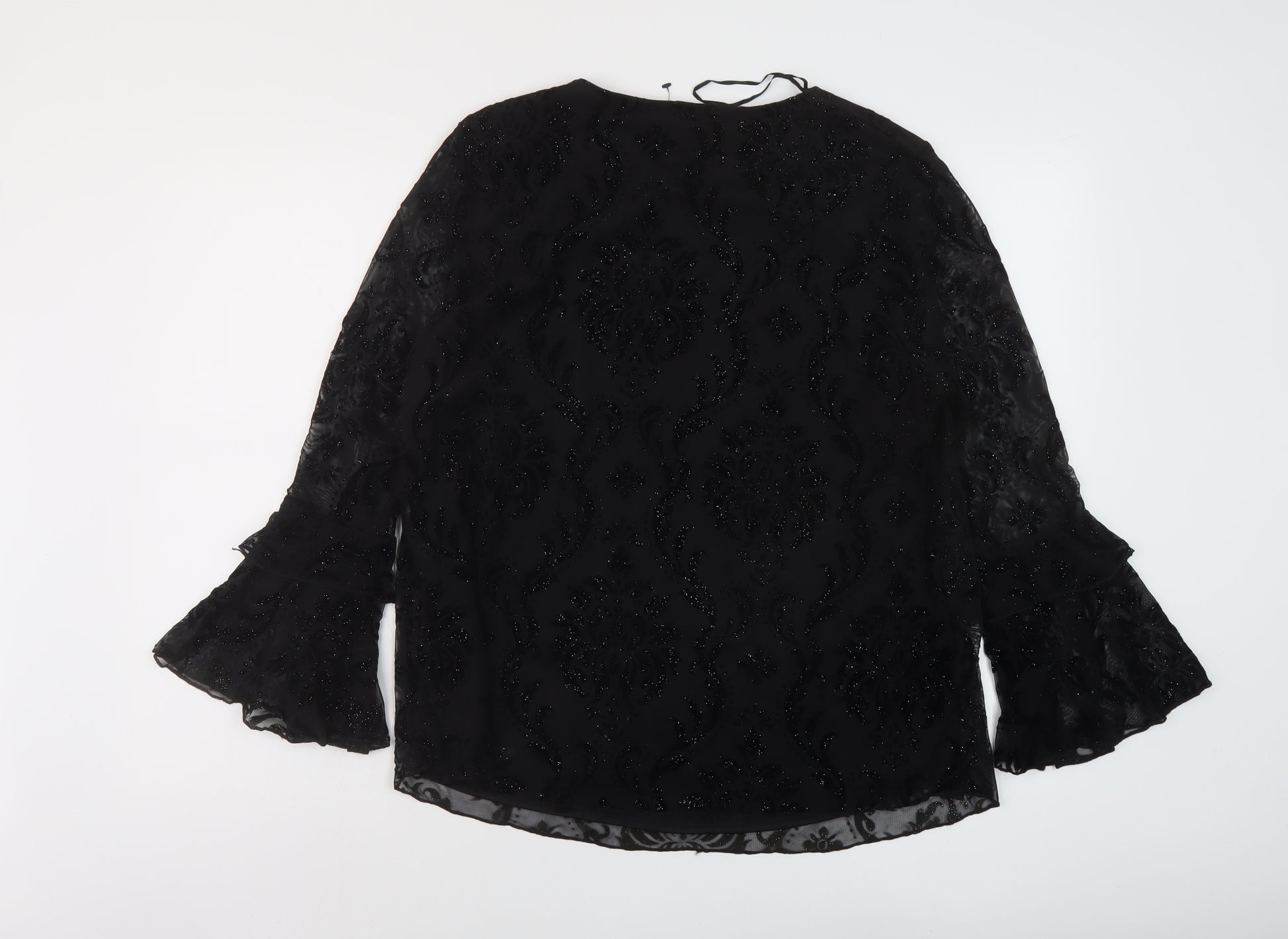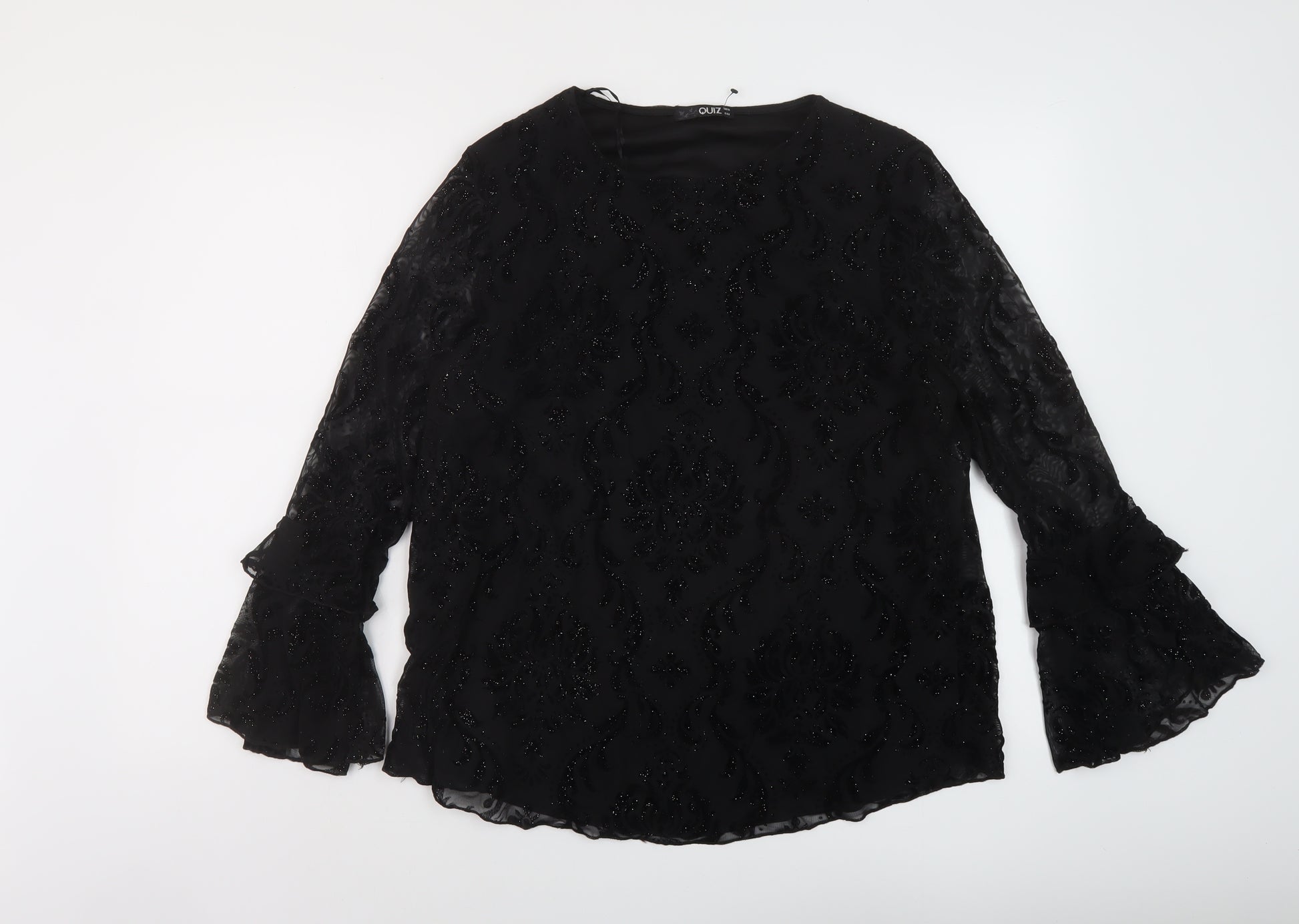 Womens Black Geometric Polyester Basic Blouse Size 18 Round Neck