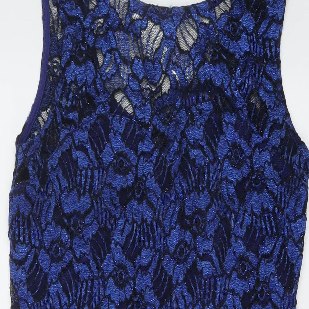 Womens Blue Floral Nylon Sheath Size 16 Round Neck Pullover