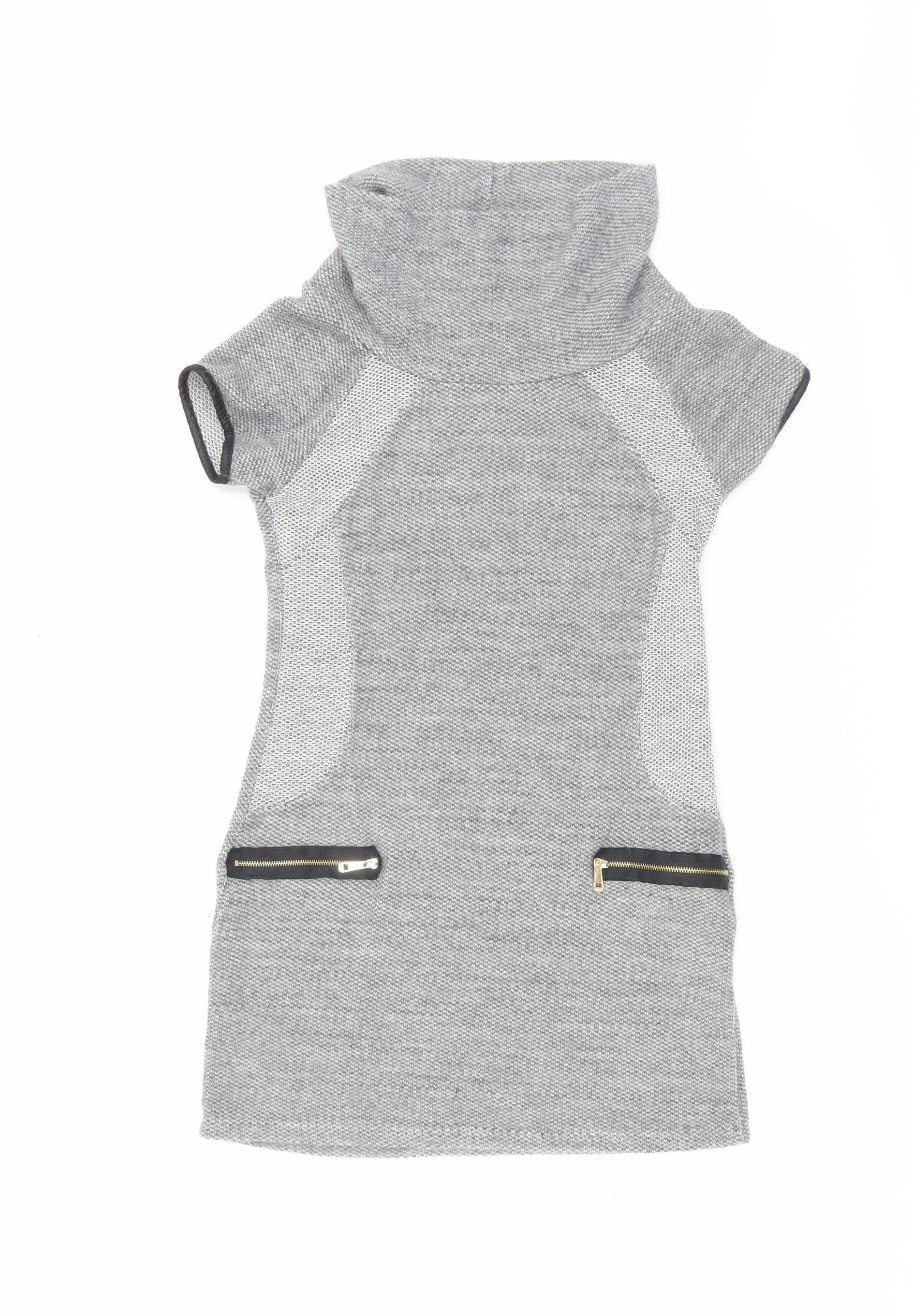 Step out in style with this chic grey shift dress by Quiz, perfect for any casual occasion. Made from a soft knit fabric, this comfortable women's dress offers a flattering cowl neckline, adding a touch of elegance to your look. The short, cap sleeves and the sophisticated zipper accents enhance its contemporary appeal, making it a versatile choice for your autumn wardrobe. Crafted in Italy, this dress combines durability with modern design. Whether for a relaxed outing or a coffee date, this adaptable grey dress ensures you stay stylish and comfortable.
