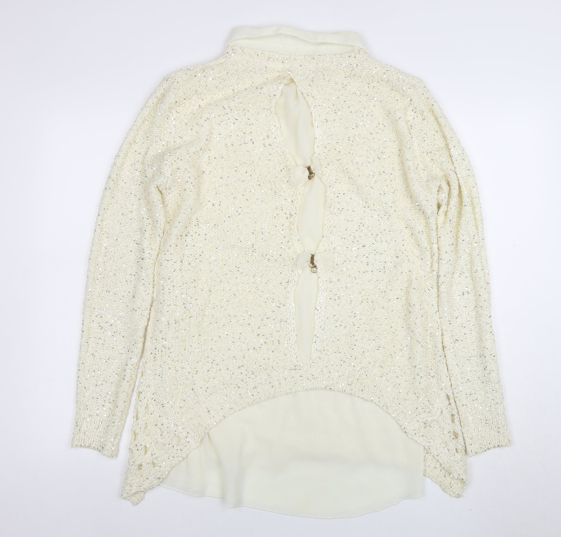 Womens Ivory Collared Sequin Knit Long Sleeve Pullover Jumper Size 16