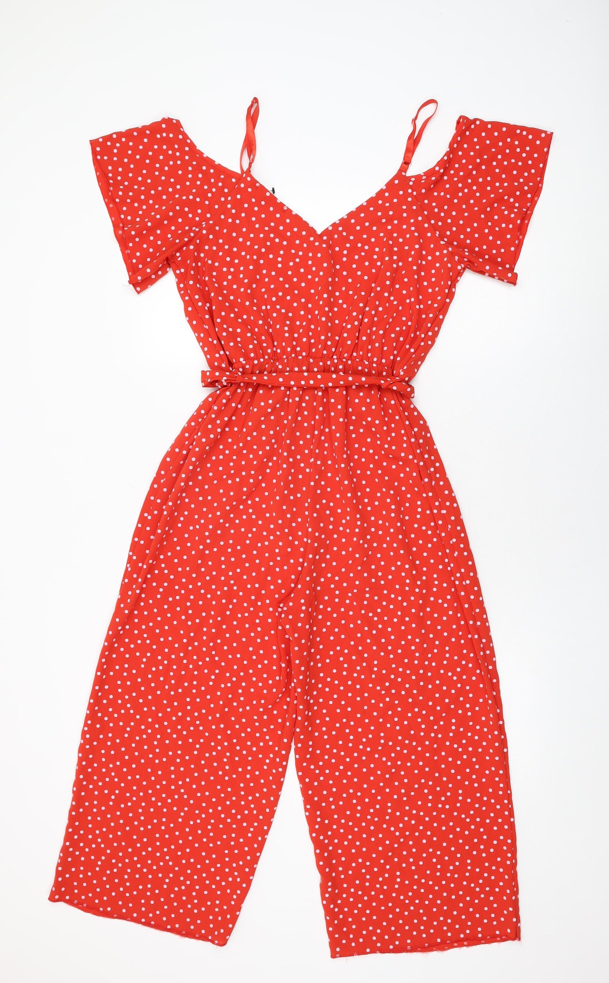 Womens Red Polka Dot Polyester Jumpsuit One-Piece Size 14 L22 in Pullover