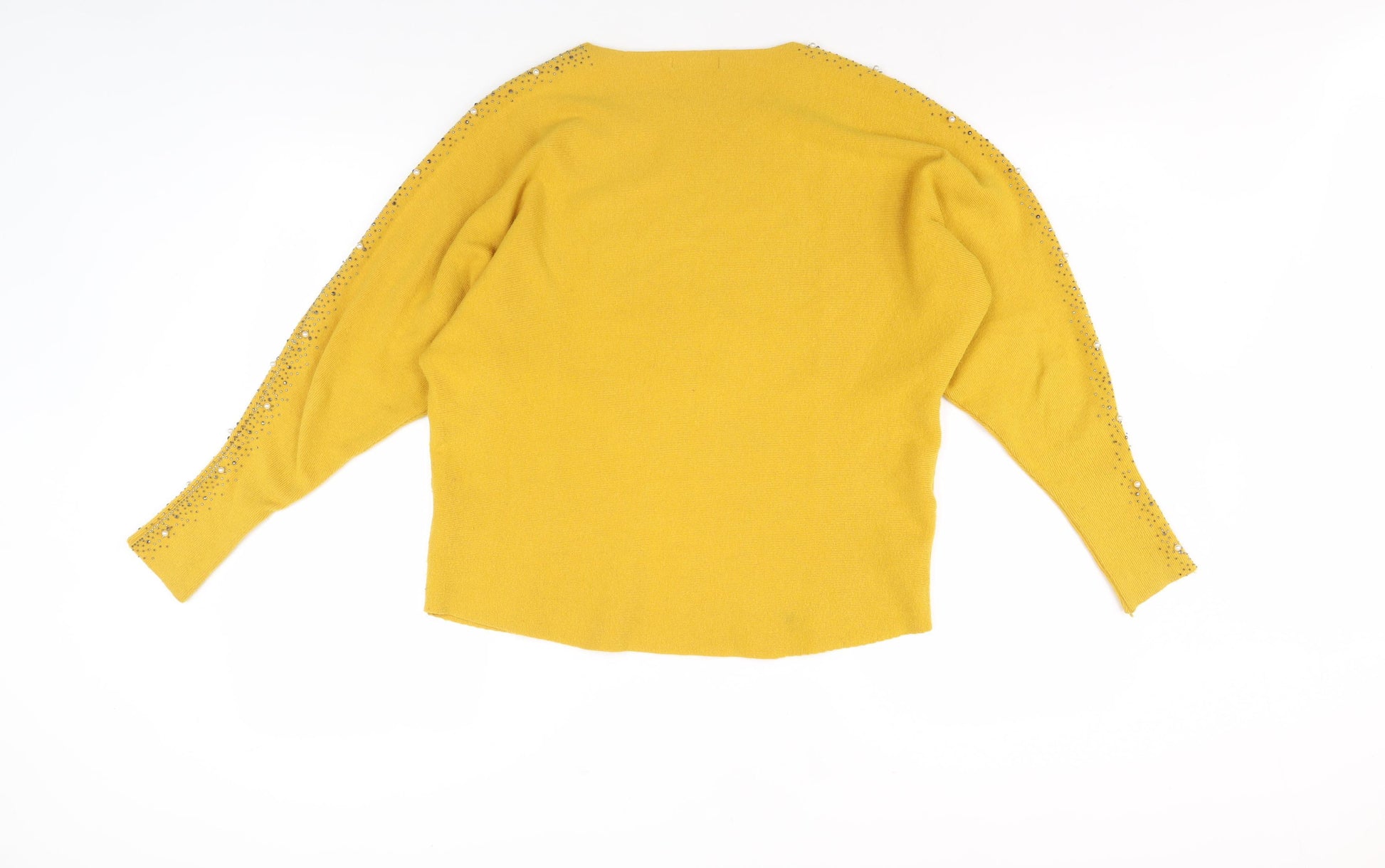 Enhance your wardrobe with this vibrant yellow jumper from Quiz, perfect for adding a pop of colour to any outfit. Designed for women, this stylish piece features long, dolman sleeves embellished with eye-catching studded accents for a touch of glamour. The jumper is crafted from a comfortable knit fabric blend of viscose, polyester, and nylon, ensuring both warmth and breathability. Ideal for casual occasions, this regular fit jumper is available in size large, providing a cosy and stylish option for day-to-day wear. Pair it with your favourite jeans or a skirt to create a versatile look that transitions effortlessly from season to season.