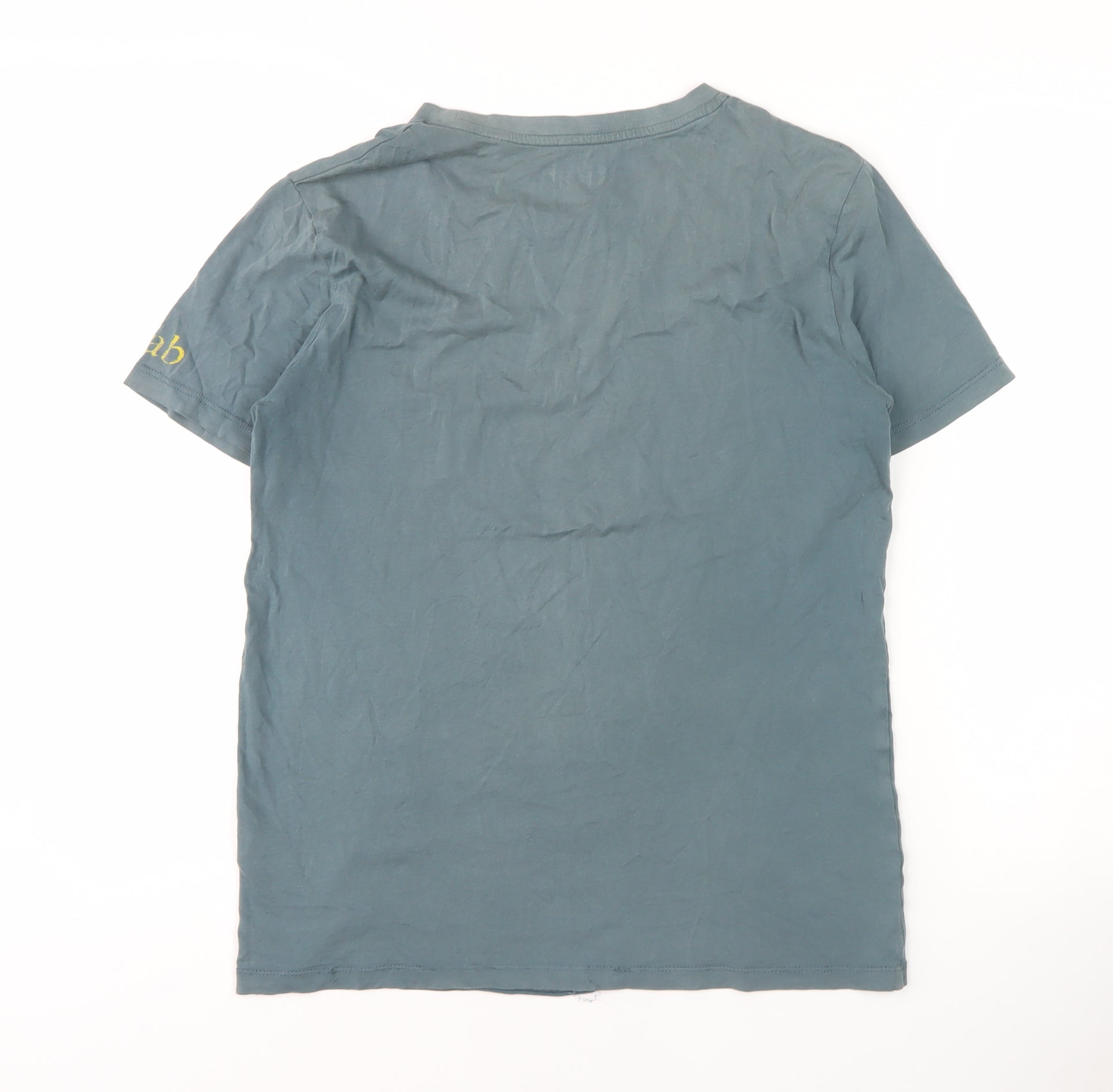 Experience comfort and style with this Rab Men's T-Shirt, perfect for any casual occasion. Crafted from 100% organic cotton, this eco-friendly blue tee offers a breathable and soft feel, ensuring all-day comfort. Its striking graphic print features the iconic Rab logo, adding a touch of adventure-ready style to your wardrobe. Short sleeves and a classic crew neck make it versatile and easy to layer, while the regular fit provides a flattering silhouette for everyday wear. Despite minor wear, its overall look is enhanced by its vintage charm, making it a unique addition to any collection. Whether you're exploring the outdoors or enjoying a relaxed weekend, this T-shirt is designed to complement your active lifestyle. Pair it with your favourite jeans or shorts for a laid-back outfit that's effortlessly stylish. Ideal for men who appreciate quality and sustainability, this piece is a must-have for those seeking functionality and fashion in one. Available in size S, suited for the modern adventurer. Don't miss out on this durable and iconic piece, embodying the essence of Rab's adventurous spirit since 1981.