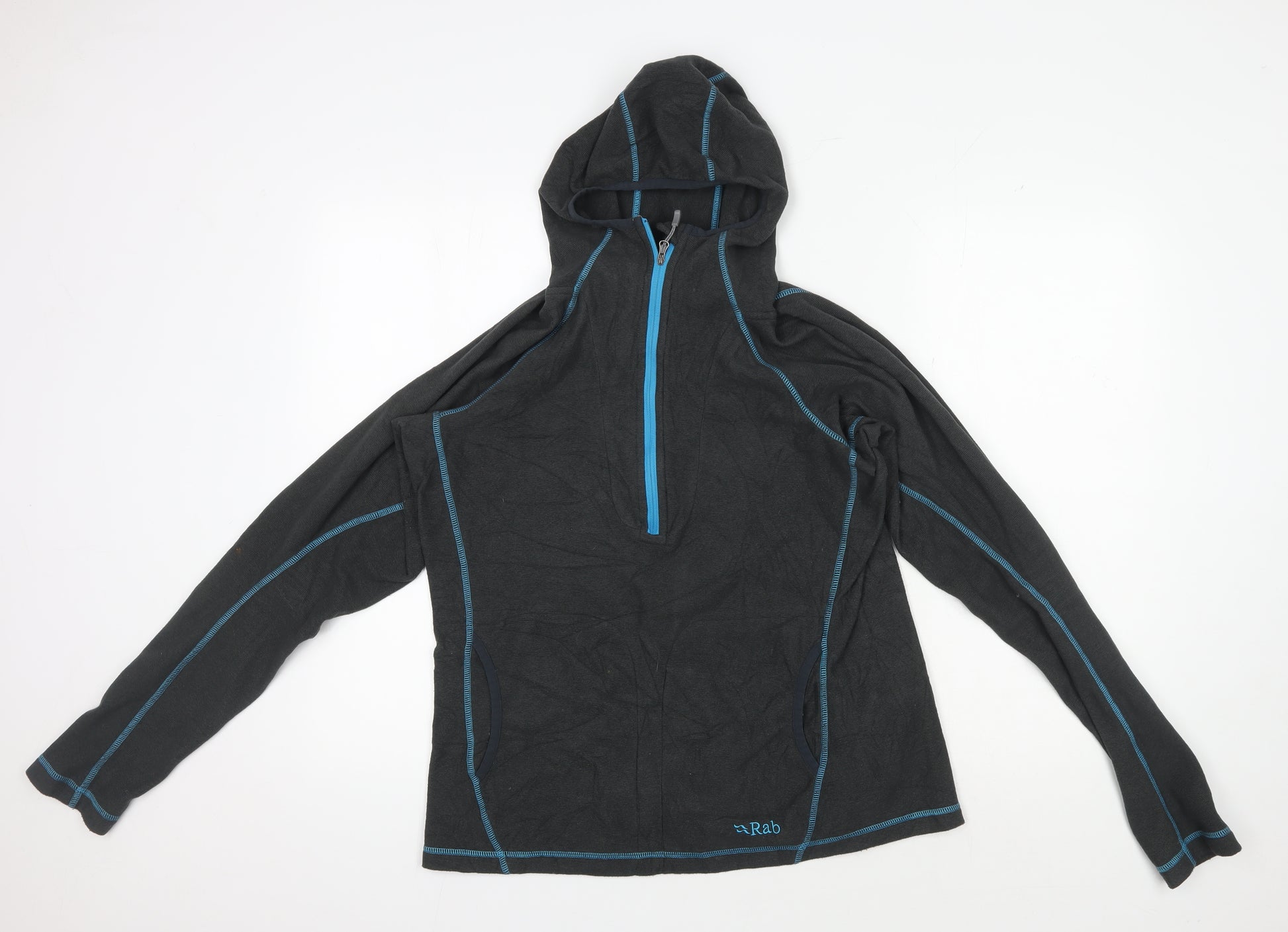 Rab Women's Grey Pullover Hoodie, Size 14, Lightweight Fleece