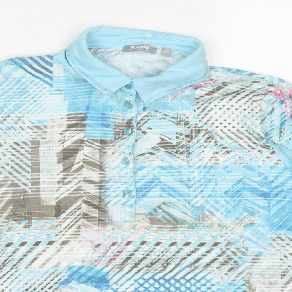 Womens Blue Geometric Cotton Basic Polo Size 18 Collared