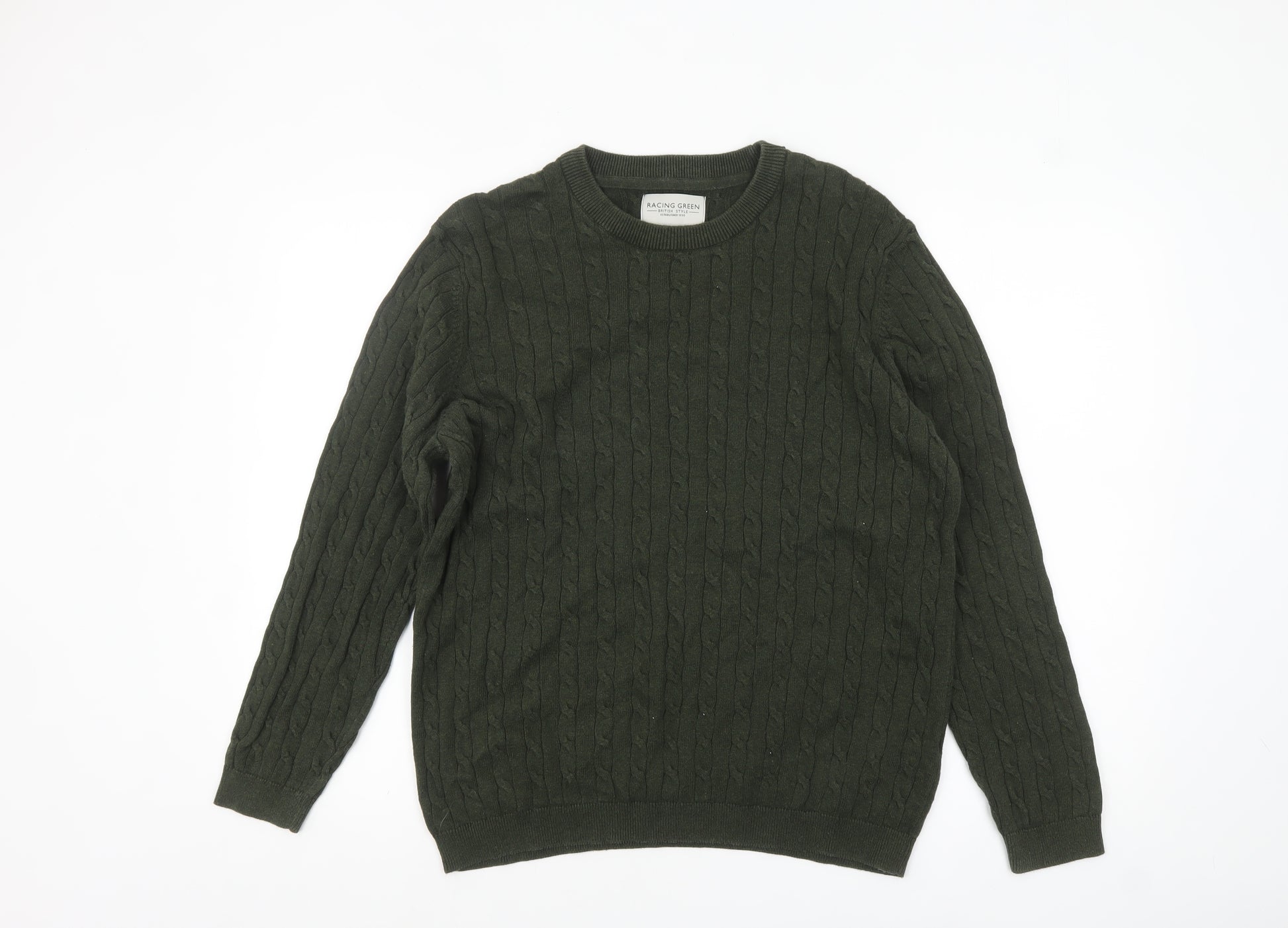 Men’s Green Cable-Knit Cotton Jumper Size L