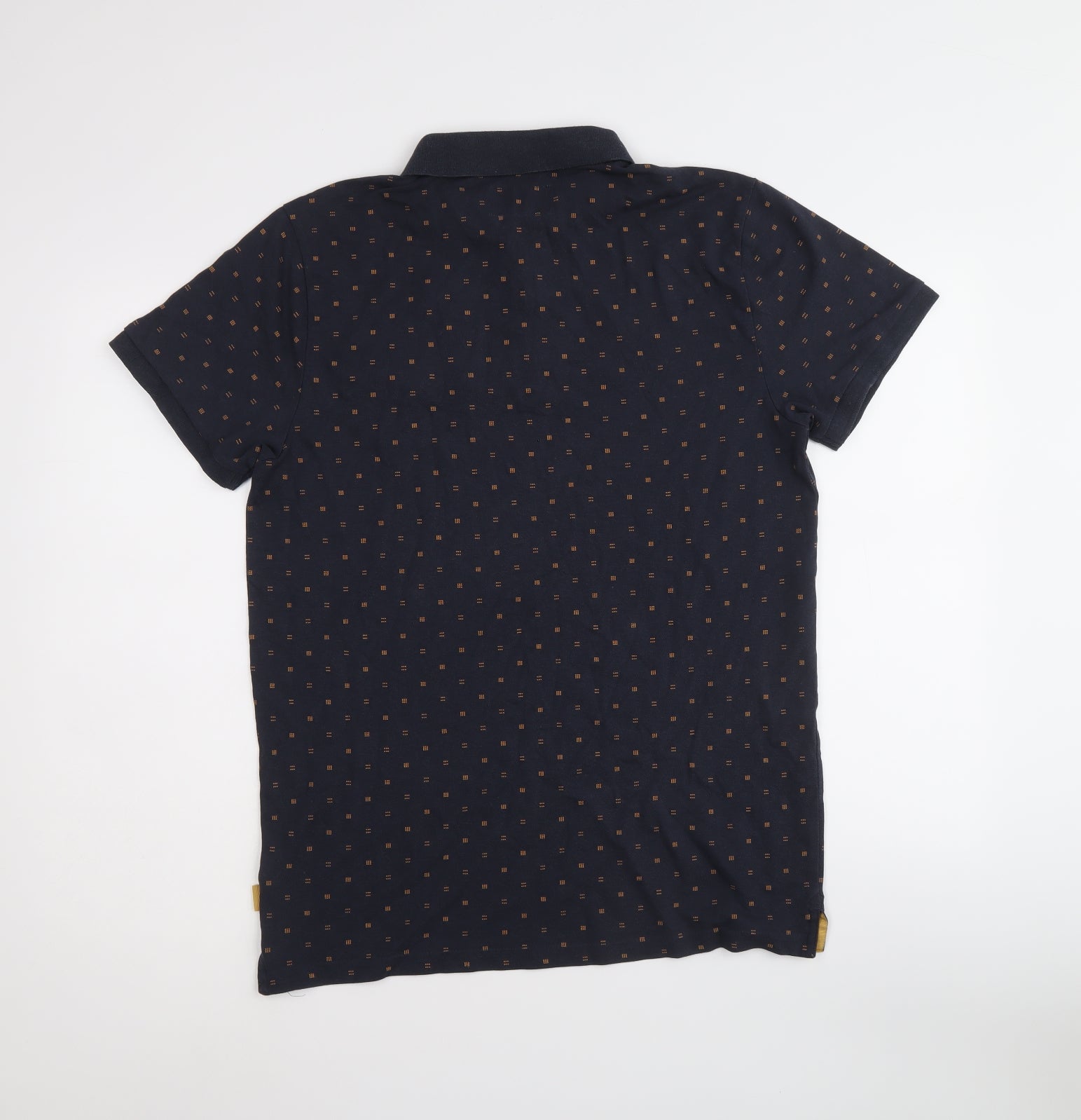 Mens Blue Geometric Cotton Polo Size M Collared Button