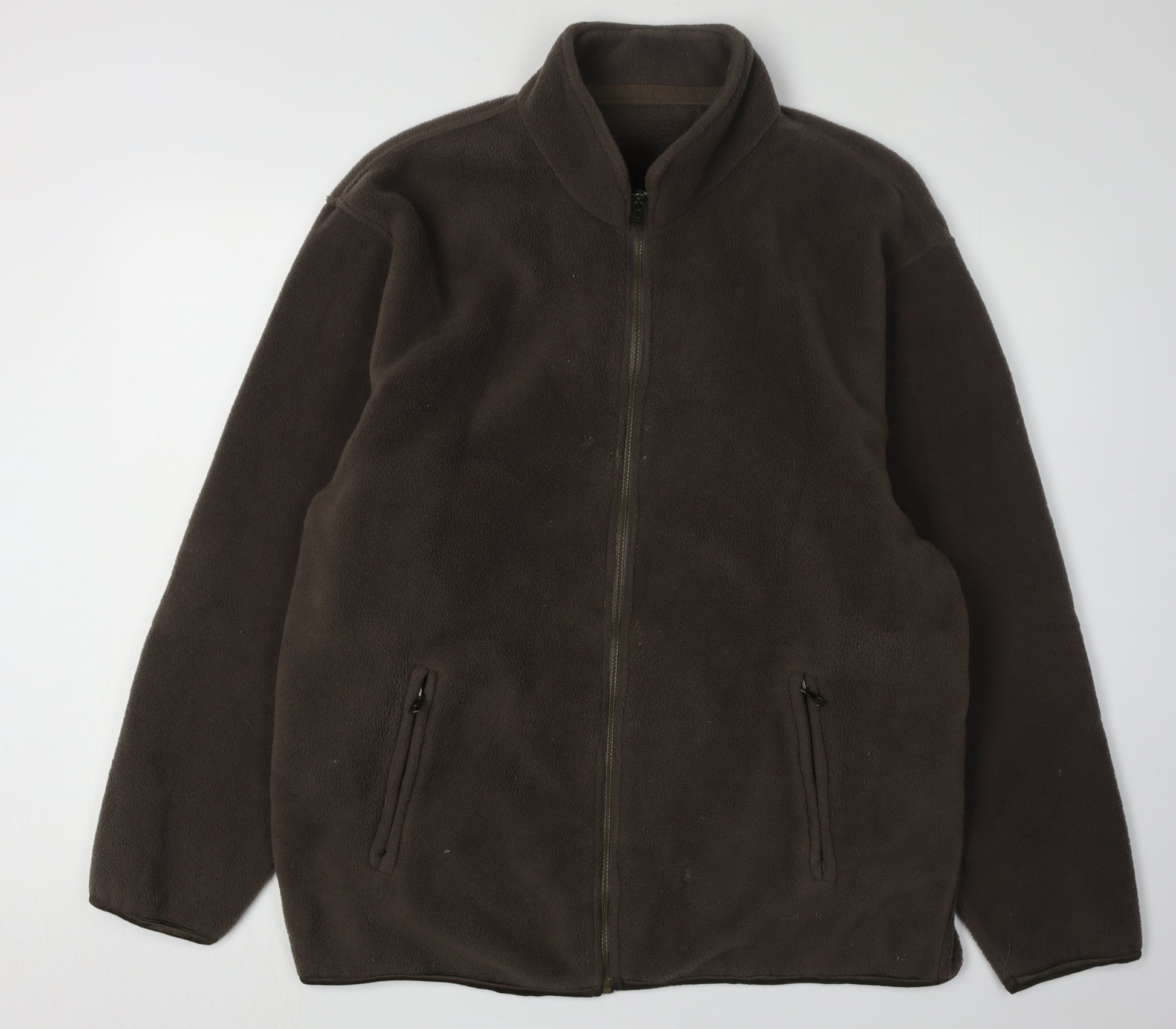 Upgrade your outerwear collection with this Racing Green Men's Brown Fleece Jacket in size L. Perfectly tailored for those chilly autumn and winter months, this jacket is styled as a basic jacket, featuring a versatile brown hue that complements any wardrobe. With its 100% polyester outer shell, it provides a warm and comfortable fit, ideal for casual outings, hiking, or walking. The stand-up collar design enhances the jacket's classic appeal while offering extra warmth for your neck. Equipped with functional features like a full zip closure and zipped pockets, this jacket ensures practical storage for your essentials on the go. It fits regularly and is finished off with a soft fleece texture courtesy of its fabric type. The durable nature of polyester promises lasting wear, and it's machine washable for easy care. Despite some light wear signs, the jacket remains in excellent condition, making it a valuable addition to your men's departmental collection. Don't miss the chance to embrace warmth and style with this reliable Racing Green fleece jacket.