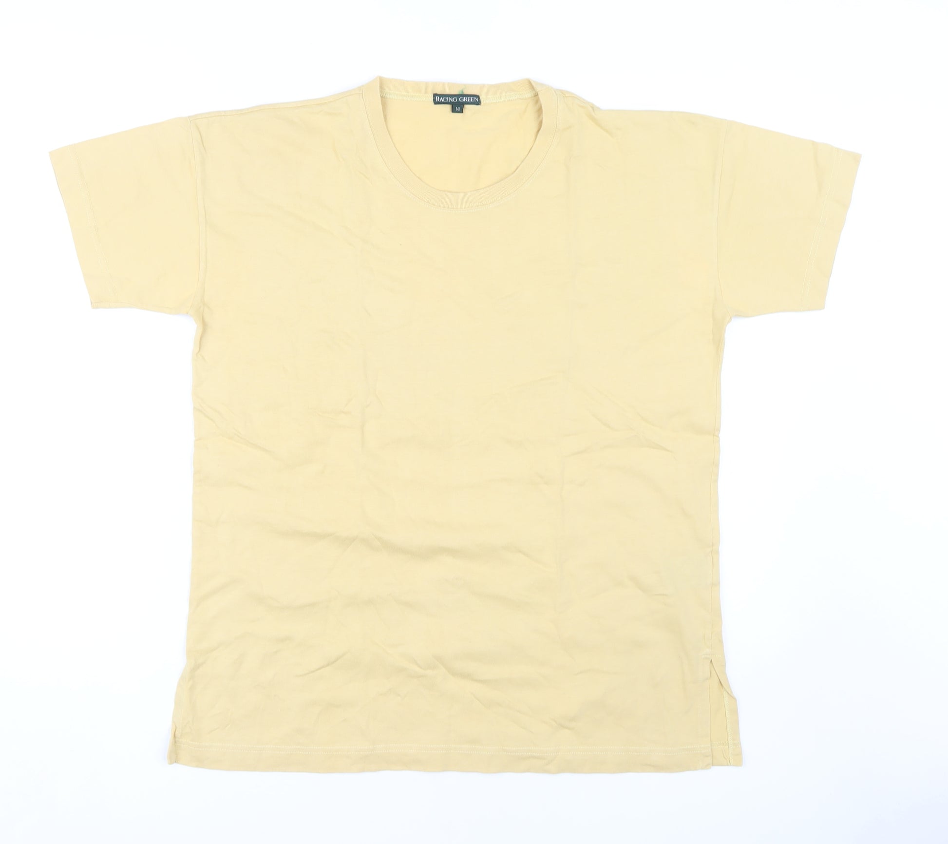 Elevate your casual wardrobe with this timeless Racing Green T-shirt. Designed for women who appreciate classic style, this beige T-shirt features a solid pattern and a classic fit, making it an excellent choice for everyday wear. Crafted from 100% cotton, it promises comfort and breathability all day long. The short sleeves and crew neckline add to its basic, yet versatile style, allowing it to pair effortlessly with your favourite jeans or skirts. Perfect for all seasons, this T-shirt is an essential piece for casual occasions. Despite its excellent condition, the T-shirt has slight wrinkling, which can be easily refreshed with a quick iron. This Racing Green T-shirt is your go-to choice for a relaxed, stylish look.