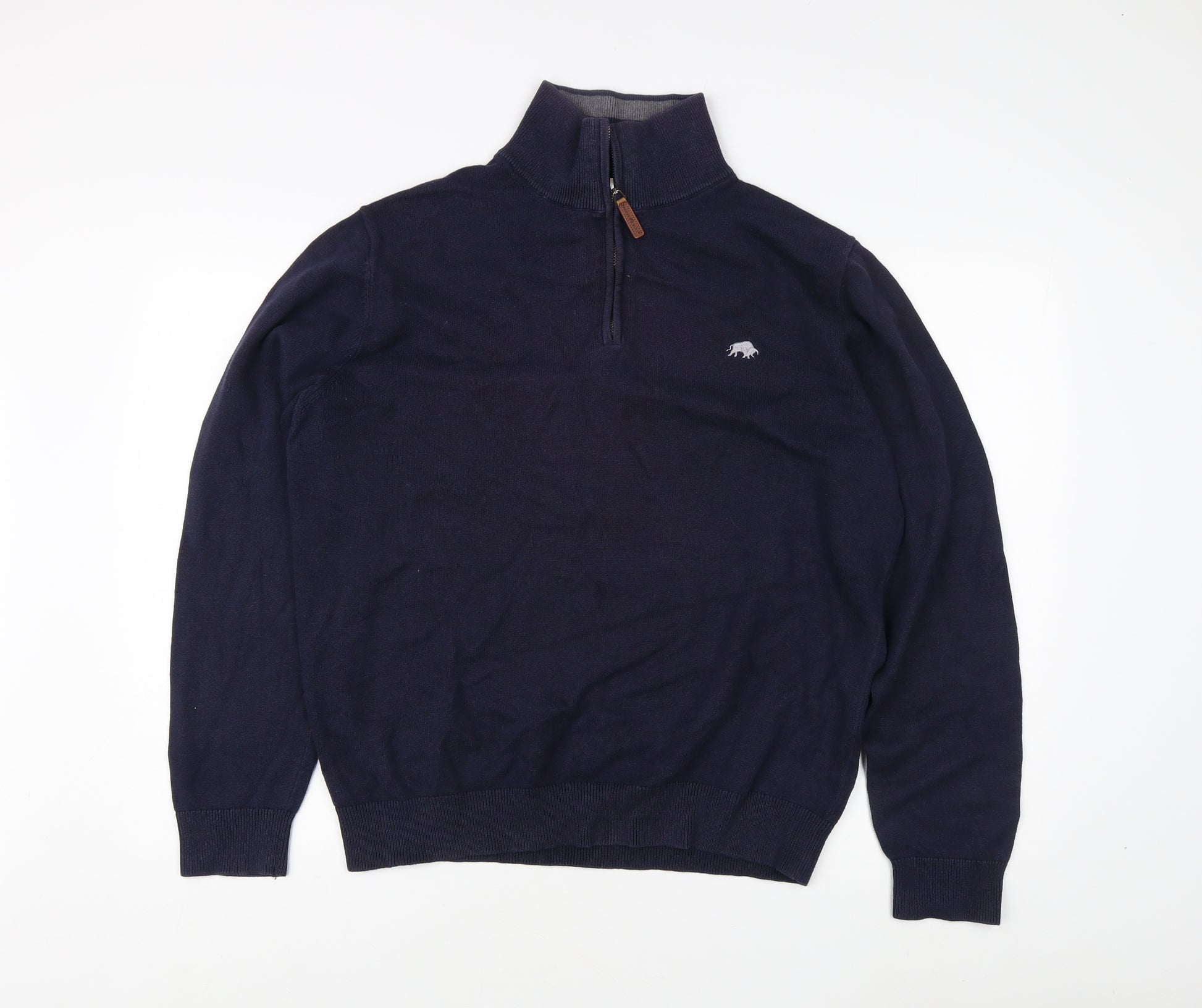 Introducing the Raging Bull Men's Sweatshirt, a perfect blend of style and comfort. Crafted in a rich blue tone, this excellent condition garment features an iconic logo accent on the chest. Designed with a versatile full zip style and a mock neck, it's ideal for both casual and smart-casual outings. The long sleeves and knit fabric make it a perfect choice for the autumn and winter seasons, providing warmth without compromising on style. Made from 95% cotton and 5% cashmere, it ensures a soft, luxurious feel against the skin, offering the perfect balance between durability and comfort. Whether you're dressing for a day out or a relaxed evening with friends, this sweatshirt delivers on both versatility and trendiness. Perfect for the modern man who appreciates both fashion and function, this Raging Bull piece will undoubtedly become a staple in your wardrobe. Don't miss out on the chance to own this stylishly comfortable sweatshirt.