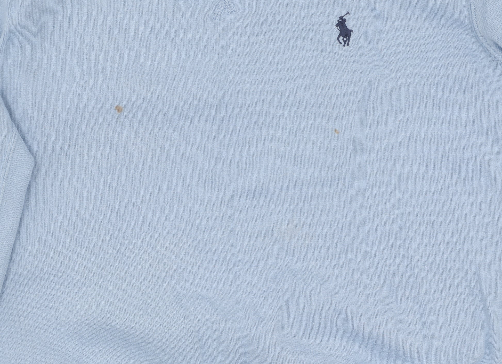 This stylish light blue pullover sweatshirt from Ralph Lauren is perfect for adding a touch of luxury to your casual wardrobe. Crafted from a comfortable blend of cotton and polyester, it offers both softness and durability. The iconic pony logo graces the chest, making a subtle yet elegant statement. With its relaxed fit, this sweatshirt is ideal for all-day wear, whether you're at home or out and about. The long sleeves and crew neck design ensure warmth during cooler months. Despite minor stains, this piece remains a chic option for the Ralph Lauren enthusiast. Pair it with jeans or leggings for a versatile look that effortlessly transitions from day to night.