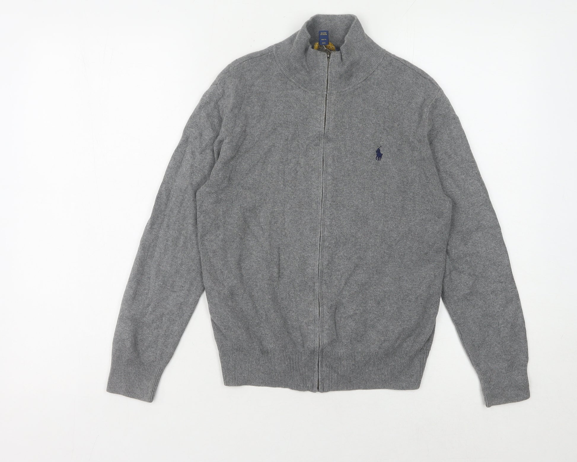 Experience style and comfort with this Ralph Lauren boys' jumper in a versatile shade of grey. Crafted from premium 100% cotton, this knit jumper boasts a full zip front, making it perfect for layering during the autumn and winter months. The mock neck design adds a touch of sophistication, ensuring warmth without compromising on style. Ideal for casual occasions, this jumper can seamlessly transition from school days to weekend outings. With its long sleeves and regular fit, it offers comfort and ease of movement for active boys. Although it shows minor signs of wear, it remains in very good condition without any significant flaws. A staple for any young wardrobe, this jumper combines the renowned quality of Ralph Lauren with practical functionality. Add this to your little one's collection for a touch of understated elegance.