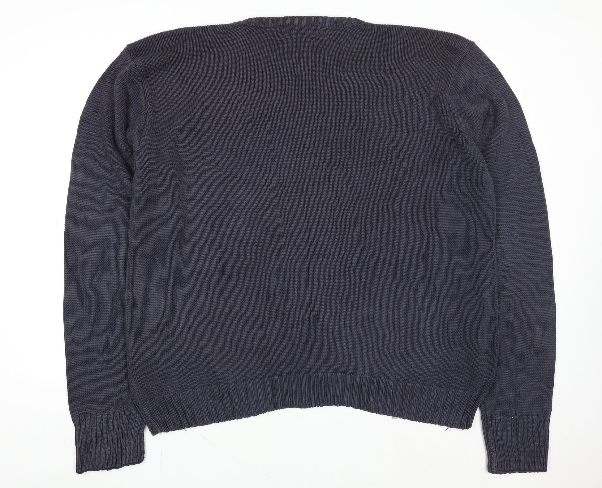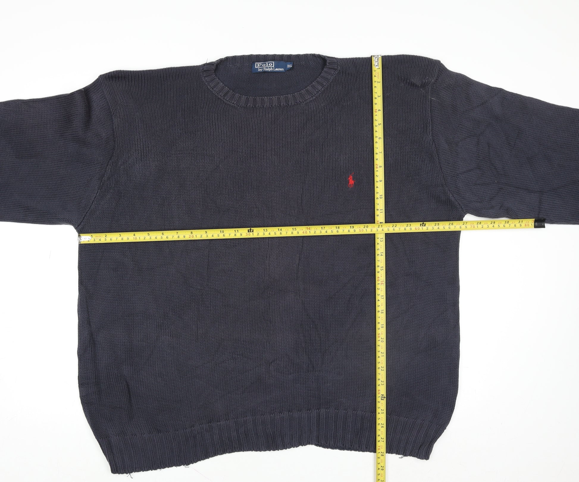 Step up your everyday style with this classic Ralph Lauren men’s jumper, crafted from 100% soft cotton for exceptional comfort and breathability. Perfect for transitional seasons or year-round layering, this premium knit offers a relaxed yet refined look that embodies the timeless appeal of the Polo by Ralph Lauren brand. The deep navy-blue tone makes it a versatile wardrobe staple that pairs effortlessly with denim, chinos, or tailored trousers for a polished smart-casual appearance. Designed with a traditional crew neckline and long sleeves, this jumper provides a comfortable, regular fit suitable for everyday wear. The iconic red embroidered Polo logo on the chest adds a subtle yet distinctive accent of sophistication and authenticity. Its tight-knit cotton fabric ensures durability and a premium feel, while the ribbed cuffs and hem deliver a neat, structured silhouette that stays comfortable all day long. Ideal for casual outings, workwear layering, or relaxed weekends, this jumper works for autumn, spring, and winter seasons alike. Machine washable for easy garment care, it offers practicality without compromising quality. Condition is excellent with only light signs of previous wear, maintaining its form, colour, and overall integrity. This Ralph Lauren pullover represents understated luxury, catering to those who value classic design and enduring craftsmanship. Make it part of your versatile wardrobe today and enjoy the effortless elegance it brings to any look.