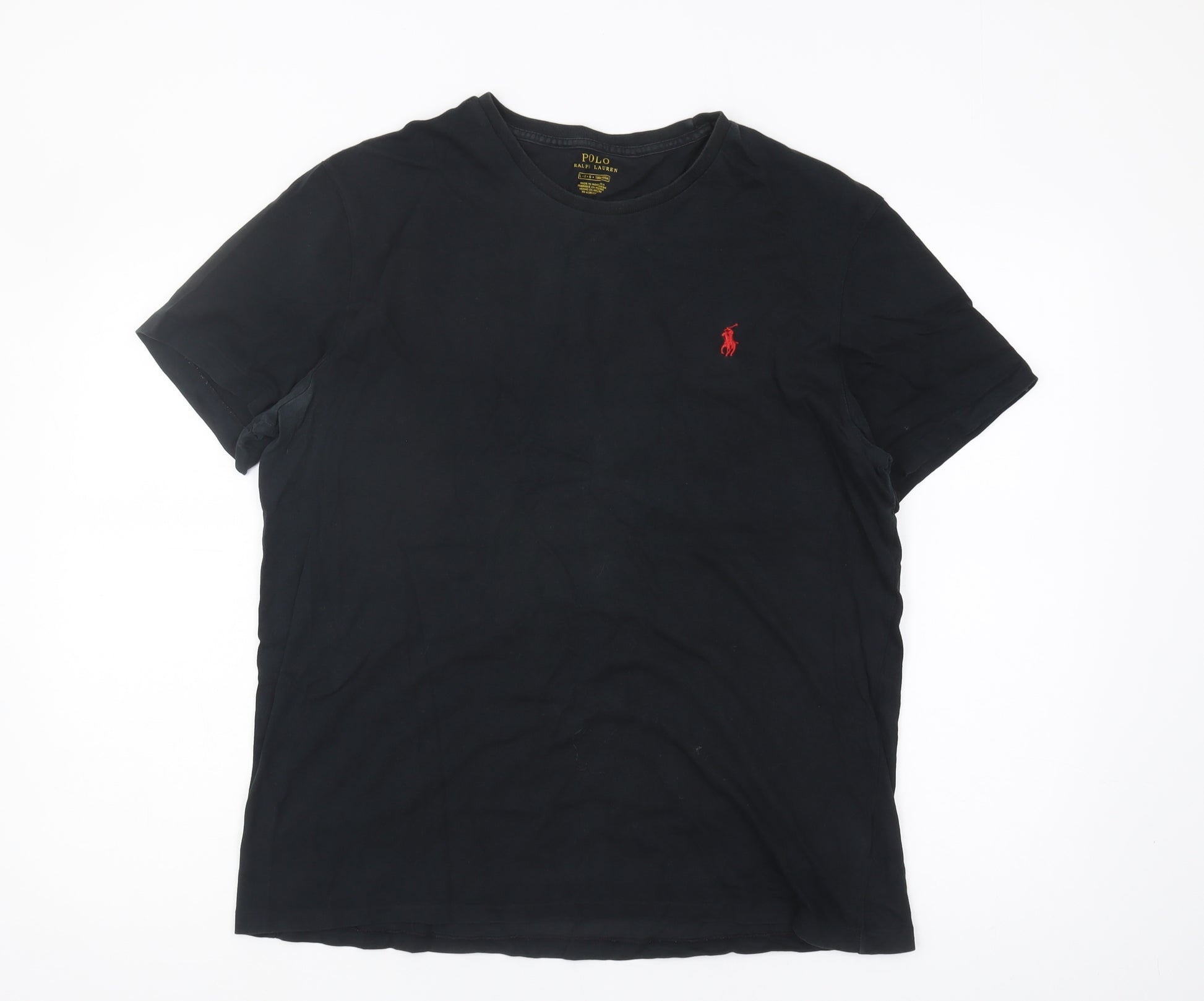 Elevate your casual wardrobe with this timeless Ralph Lauren Men's T-Shirt, perfect for effortless style. Made from 100% premium cotton, this t-shirt promises comfort and breathability throughout the day. The solid black colour adds a sophisticated touch, ensuring it pairs seamlessly with any outfit. Featuring a regular fit and classic crew neck design, it offers a flattering silhouette for all body types. Short sleeves provide flexibility, making it suitable for any season. Accented with the iconic Ralph Lauren logo, it exudes subtle branding that fans of the label will love. Ideal for everyday wear, this versatile piece transitions easily from day to night, from a laid-back outing to a stylish gathering. The jersey fabric is not only soft but also machine washable for ease of care. Whether you're dressing it up with a blazer or keeping it casual with jeans, this t-shirt is a wardrobe staple that will see you through all seasons. Excellent condition without original tags, gently used, adding character without compromise. A must-have for any fashion-conscious gentleman looking to combine comfort with style. Priced competitively, it promises quality and iconic fashion.