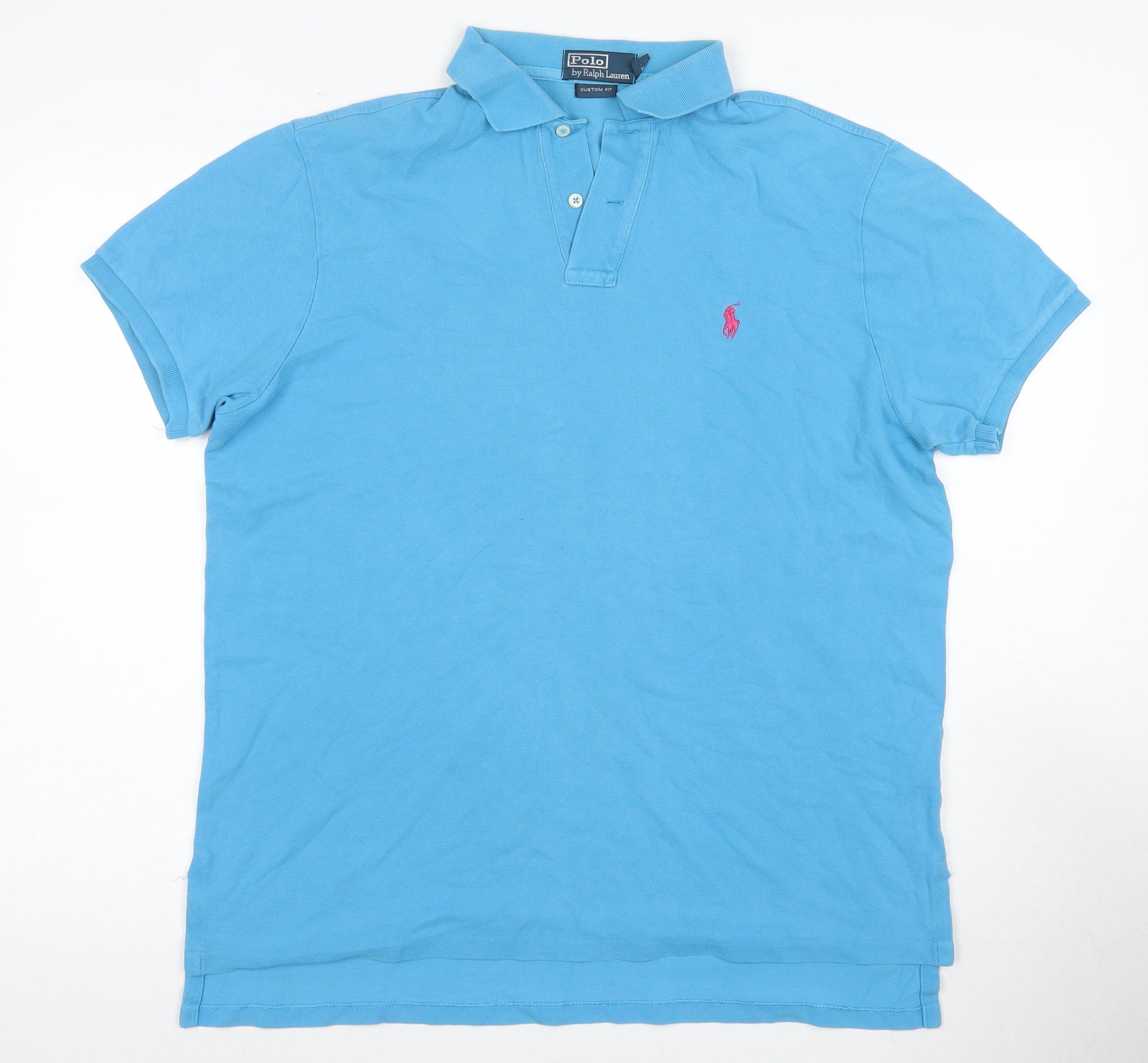 Upgrade your wardrobe with this classic Ralph Lauren men's blue polo shirt. Crafted from 100% cotton, this short sleeve polo provides a Regular fit that combines style and comfort effortlessly. Ideal for casual outings or smart-casual occasions, the shirt features a solid pattern and the iconic Ralph Lauren logo accent on the chest, adding a touch of sophistication.Designed for the fashion-forward man, this polo shirt is perfect for summer wear. Its machine washable care ensures easy maintenance, while the button closure and collared neckline complement its classic appeal. The point collar style enhances its polished look, making it a versatile addition to your collection.With an excellent condition status and minor wear noted, this garment offers great value for those seeking quality fashion at an affordable price. Don't miss out on this opportunity to own a piece of Ralph Lauren craftsmanship. Pair it with jeans or chinos for a smart yet relaxed ensemble, suitable for various settings.This polo shirt is more than a wardrobe staple; it's a statement of elegance and casual sophistication, perfect for any stylish man.