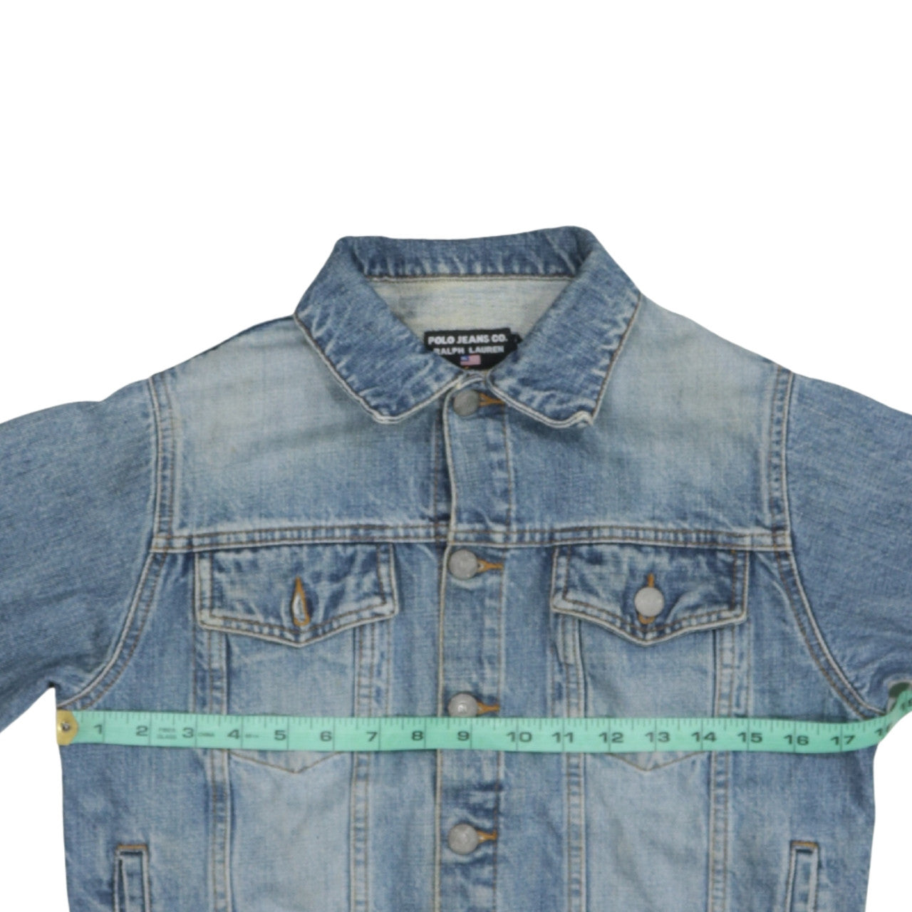 This authentic Ralph Lauren Polo Jeans Co. women’s denim jacket combines timeless style with durability, making it a must-have piece for every wardrobe. Crafted from soft 100% cotton denim, its faded blue wash offers a classic worn-in look that exudes effortless, casual charm. Designed in traditional jean jacket fashion, it features button front fastening, twin chest flap pockets with button closures, and side welt pockets for added practicality. The structured collar and tailored seams create a flattering, feminine silhouette while maintaining the rugged appeal of traditional denim outerwear. This jacket is perfectly suited for transitional seasons such as spring and autumn, offering lightweight comfort and easy layering options. Its long sleeves and full-length button closure provide versatility, whether worn open over a dress or buttoned up with jeans for a coordinated denim-on-denim style. The interior is cotton-lined for breathable comfort, and subtle branding details include a small logo patch at the back hem, giving an understated yet unmistakable mark of Ralph Lauren’s premium craftsmanship. Condition is very good, showing only gentle fading consistent with minimal wear, with no visible flaws or damage. A well-cared-for piece with a naturally distressed finish, it captures the quintessential American casual aesthetic that Ralph Lauren is famous for. Perfect for pairing with casual outfits, weekend streetwear, or layered looks during cooler days. A wardrobe staple that never goes out of fashion, this Ralph Lauren denim jacket offers both timeless appeal and everyday wearability. Comfortable, easy to style, and superbly crafted, it’s ideal for fashion lovers seeking a versatile classic that adds instant style to any outfit.