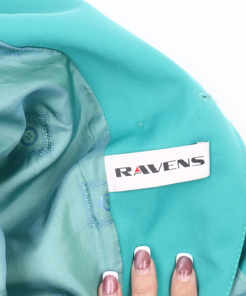 Step out in style with this vibrant green suit jacket from RAVENS, designed for women who appreciate elegance and a relaxed fit. This eye-catching piece is perfect for spring and summer, offering a refreshing splash of colour to your wardrobe. The jacket is crafted from 100% cotton, ensuring both comfort and breathability while maintaining a sophisticated appearance. The woven fabric type adds a touch of texture, making it ideal for a range of occasions. Despite being previously worn, it remains in excellent condition with only slight signs of wear. The lined interior crafted from polyester adds to the overall comfort and completes the polished look. This regular length jacket features a chic double-breasted cut with a six-button front style, adding a hint of classic elegance to your outfit. The three-button sleeve detail provides a touch of sophistication, while the relaxed fit ensures all-day comfort. Whether you're heading to a casual event or aiming to make a statement in the workplace, this suit jacket is a versatile addition to your collection. Don't miss the chance to own this remarkable RAVENS jacket, providing a perfect blend of fashion and function. It's time to elevate your ensemble with this standout piece.