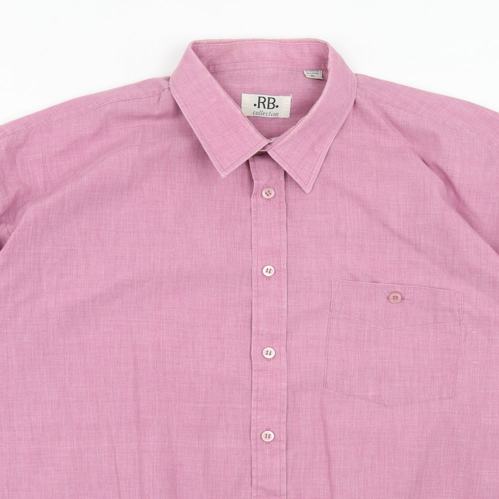 Mens Pink Polyester Button-Up Size XL Collared Button